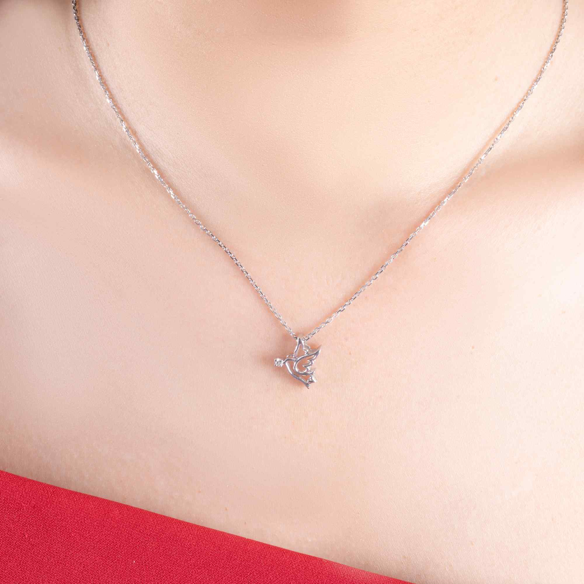 Những đường nét cách điệu tạo nên hình ảnh bồ câu đầy nghệ thuật, vừa thanh thoát vừa hiện đại. Điểm nhấn đá nhỏ lấp lánh như ánh sáng hy vọng, tượng trưng cho niềm tin và những điều tốt đẹp luôn hiện hữu trong cuộc sống.