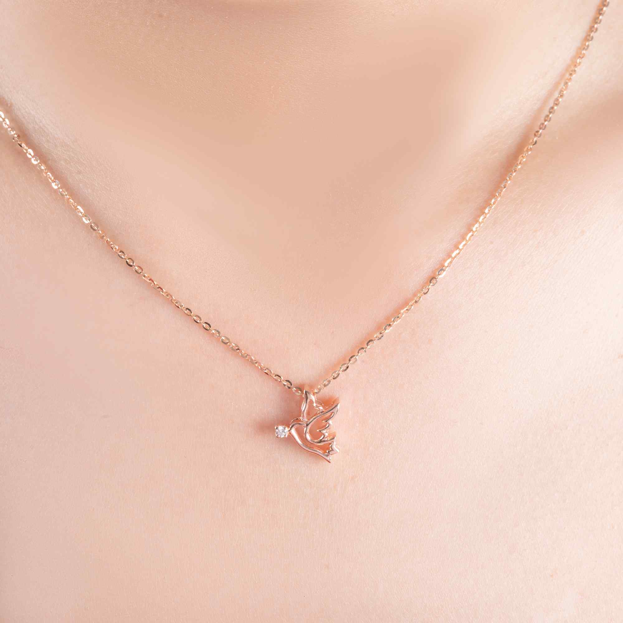Những đường nét cách điệu tạo nên hình ảnh bồ câu đầy nghệ thuật, vừa thanh thoát vừa hiện đại. Điểm nhấn đá nhỏ lấp lánh như ánh sáng hy vọng, tượng trưng cho niềm tin và những điều tốt đẹp luôn hiện hữu trong cuộc sống.