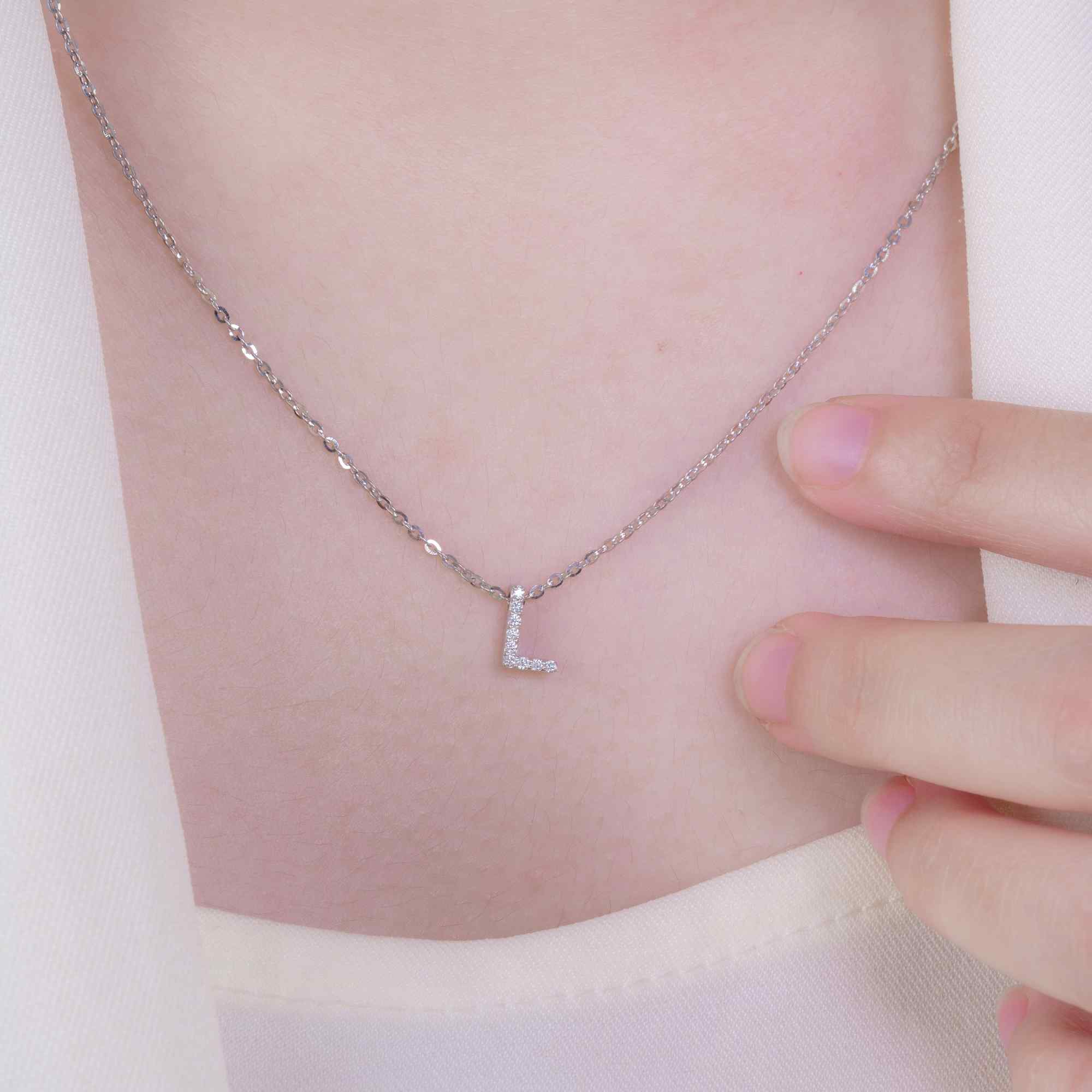 Chiếc dây cổ chữ L được chế tác tinh xảo, điểm xuyết những viên đá lấp lánh mang vẻ đẹp thanh lịch và tinh tế. Chữ L không chỉ là ký tự cá nhân, mà còn là biểu tượng của Love (Tình yêu) và Luck (May mắn) – món trang sức như một lời chúc an lành, hạnh phúc và trọn vẹn yêu thương.