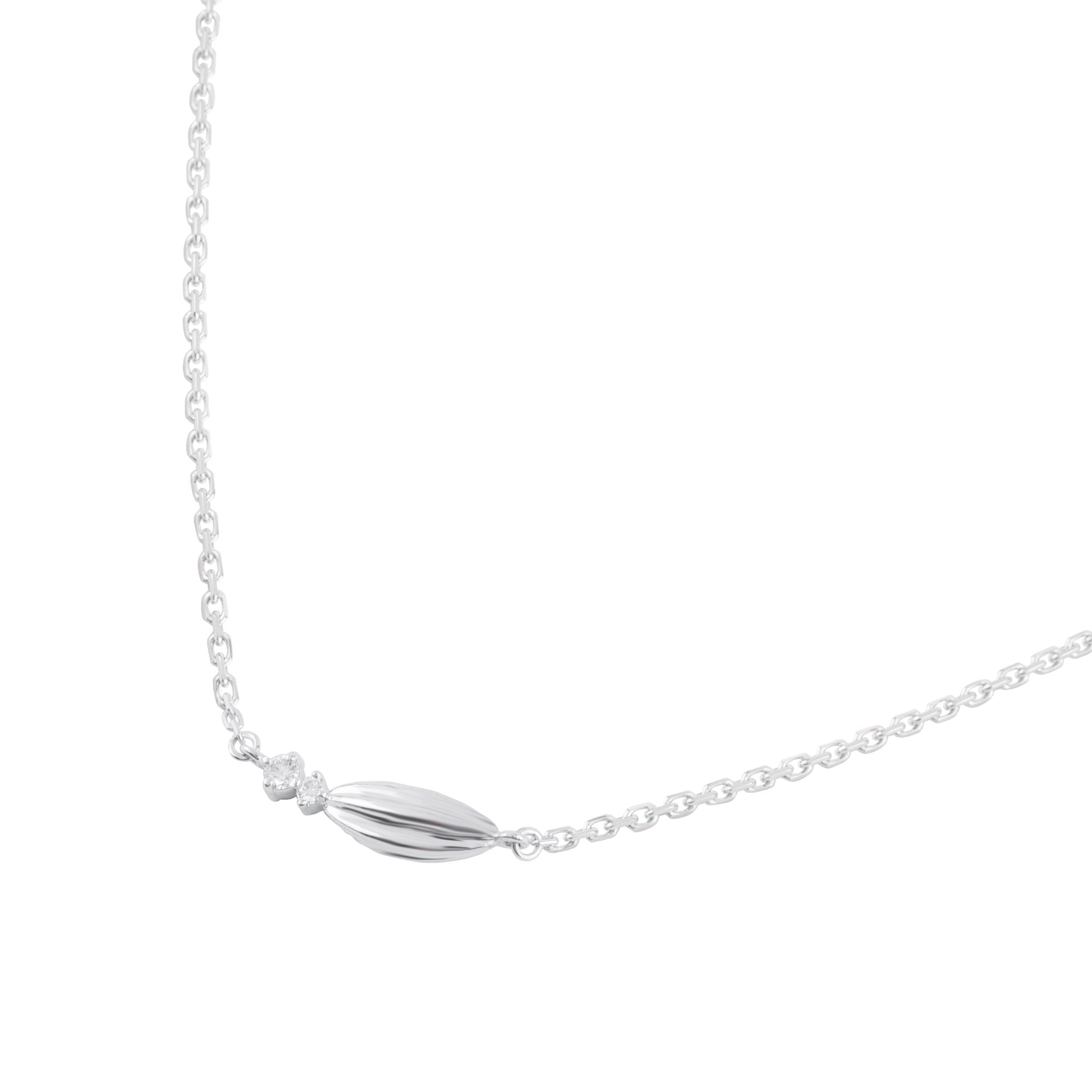 Lấy cảm hứng từ hình tượng hạt lúa – biểu trưng cho sự no ấm, sinh sôi và thành quả ngọt ngào sau những tháng ngày vun trồng – thiết kế dây chuyền mang vẻ đẹp giản dị nhưng đầy ý nghĩa.
