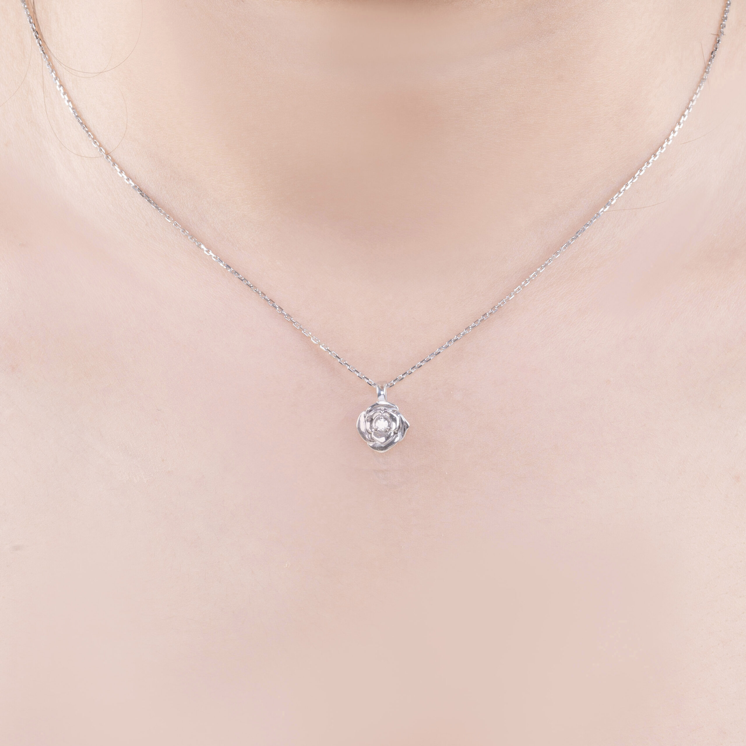 Mặt dây lấy cảm hứng từ hoa mẫu đơn – loài hoa biểu trưng cho sự đủ đầy, phú quý và vẻ đẹp thanh tao. Thiết kế cánh hoa bo tròn, xếp lớp mềm mại ôm lấy viên đá lấp lánh ở tâm, tạo cảm giác như bông mẫu đơn đang nở rộ dưới ánh nắng sớm.