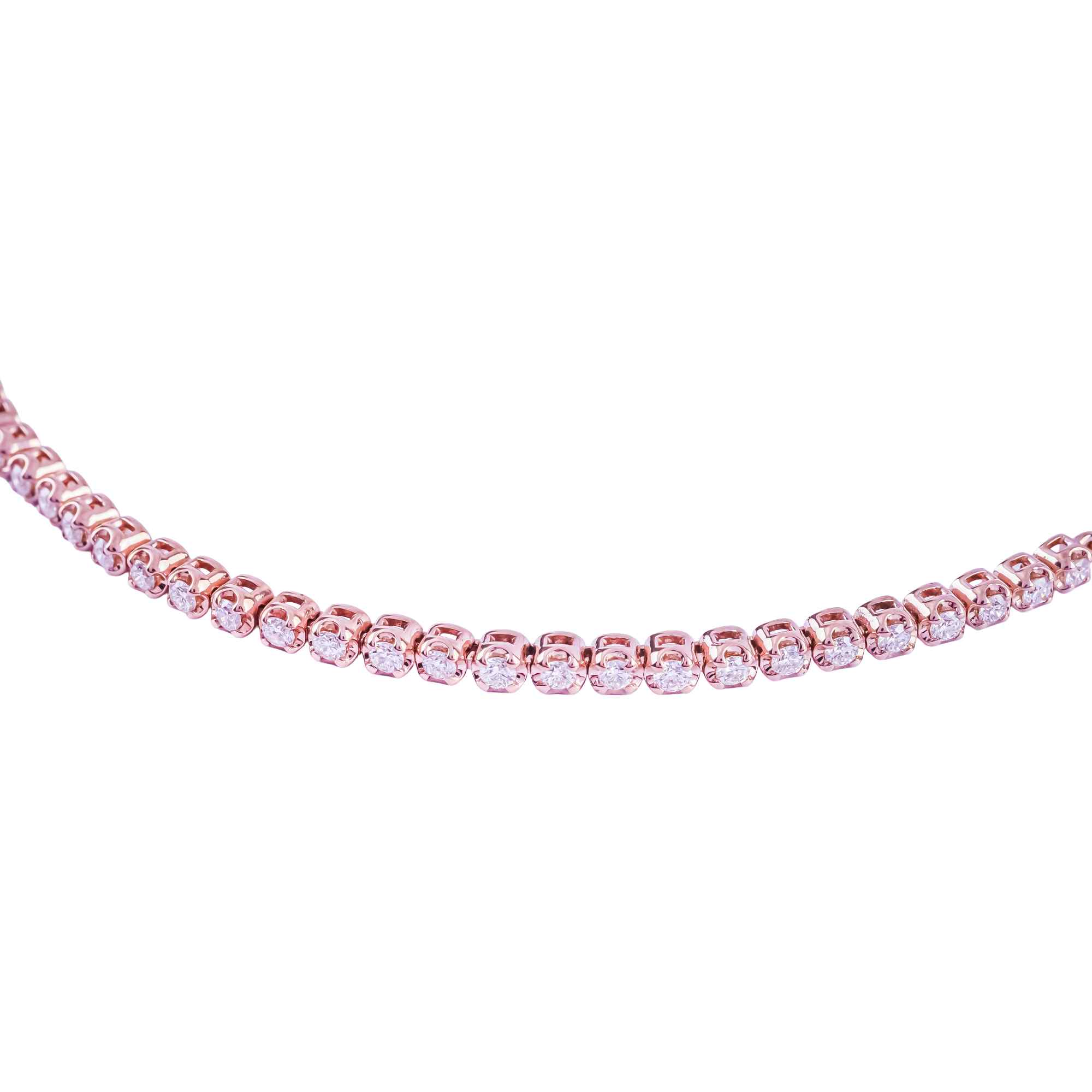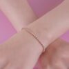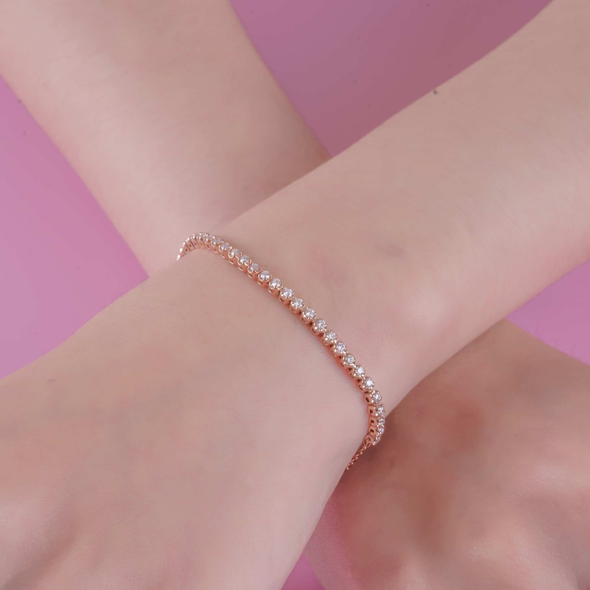 Lắc tay vàng hồng thiết kế thanh mảnh với dãy kim cương tấm được đính liên tiếp tinh tế, tạo hiệu ứng lấp lánh nhẹ nhàng trên cổ tay. Kiểu dáng hiện đại, nữ tính, dễ dàng điều chỉnh kích thước và phù hợp đeo hằng ngày hoặc trong những dịp đặc biệt.