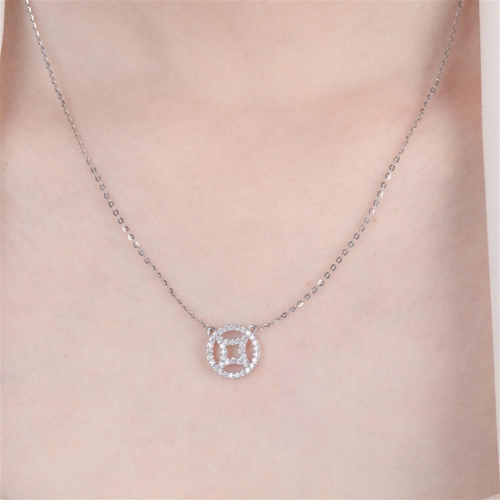 Dây chuyền kim tiền kim cương mang lại sự kết hợp hoàn hảo giữa phong cách hiện đại và ý nghĩa phong thủy sâu sắc. Mặt dây kim tiền tròn lấp lánh, đính kim cương thiên nhiên tỉ mỉ, là biểu tượng của sự thịnh vượng và tài lộc, phù hợp cho những ai muốn tỏa sáng và thu hút năng lượng tích cực.