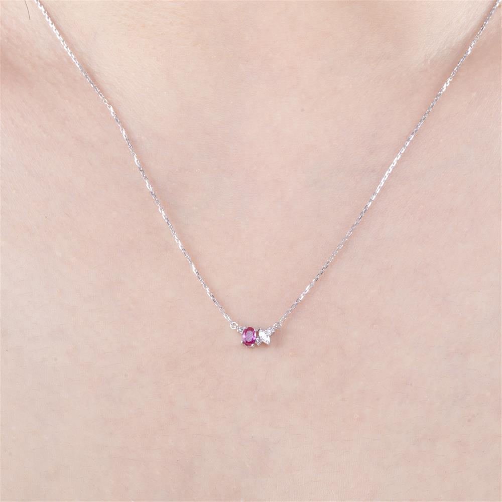 Tựa như nụ hồng trong sương sớm, dây chuyền đá hồng điểm kim cương mang đến vẻ đẹp thanh tao và dịu dàng cho mọi cô gái.