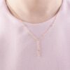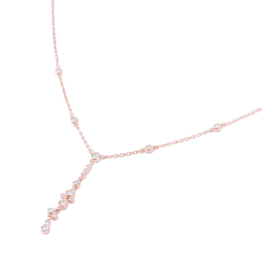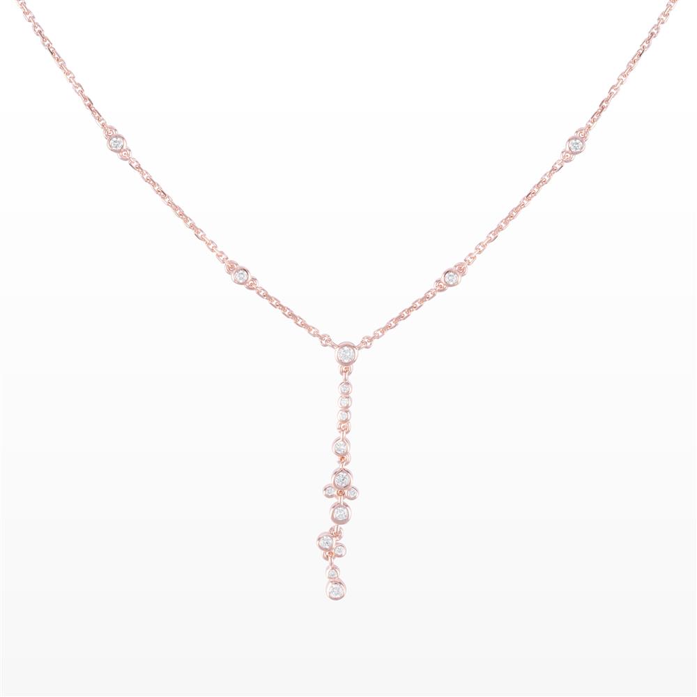 Thiết kế dáng dài tinh tế, kết hợp chuỗi kim cương nhỏ nối tiếp nhau như dòng sáng uốn lượn, tôn trọn đường nét cổ thanh thoát và bờ vai mảnh mai của phái đẹp.