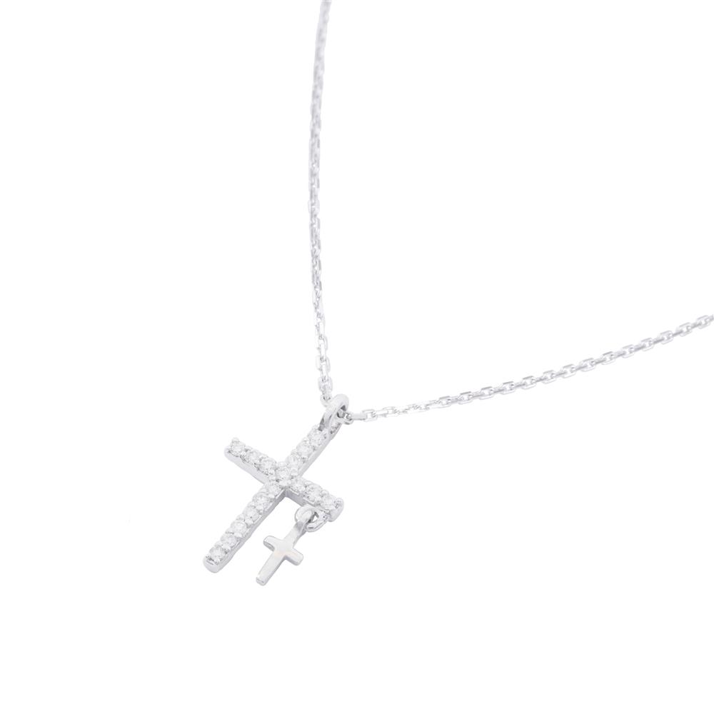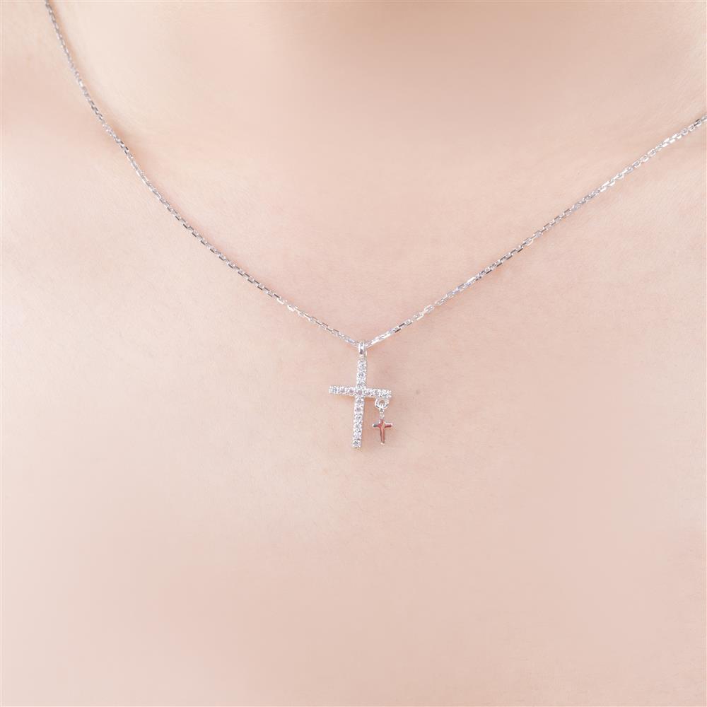Một thiết kế mang vẻ đẹp của sự bình yên và niềm tin. Mẫu dây chuyền thánh giá kim cương này được chế tác dựa trên tinh thần tối giản sang trọng, kết hợp giữa thánh giá lớn đính kim cương lấp lánh và một charm thánh giá nhỏ thả cạnh đầy duyên dáng.