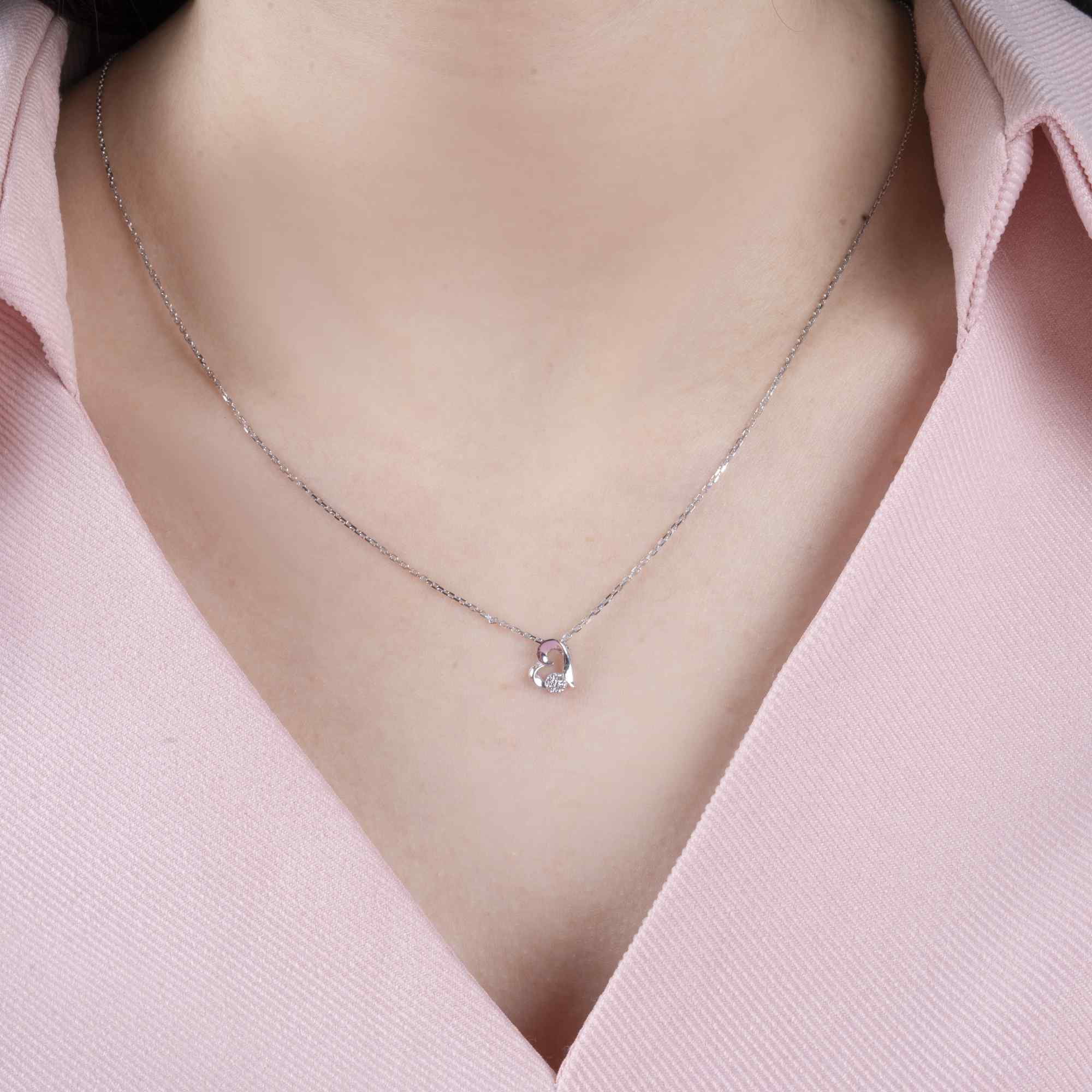 Sợi dây mảnh nâng đỡ mặt dây nhẹ nhàng, để thiết kế khẽ nằm gần trái tim, như một lời thì thầm yêu thương được giữ kín. Mỗi chuyển động nhỏ đều khiến ánh sáng phản chiếu rất khẽ, đủ để người đối diện cảm nhận được sự ấm áp và gắn kết.