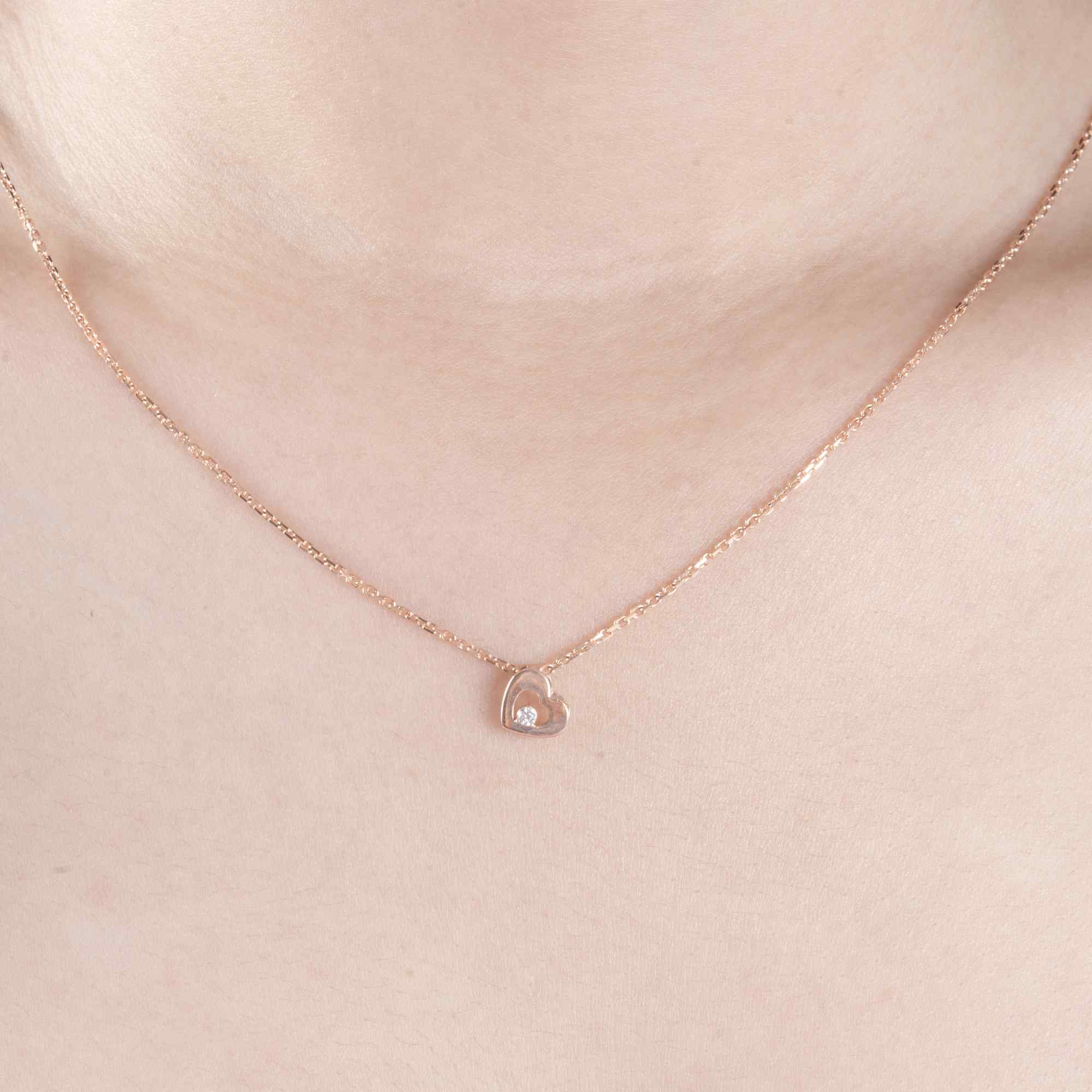 Sợi dây mảnh nhẹ ôm lấy xương quai xanh, nâng đỡ mặt dây hình trái tim nhỏ xinh, mềm mại trong sắc hồng dịu dàng. Ở trung tâm, một viên đá lấp lánh như nhịp đập khẽ khàng của yêu thương – tinh tế, trong trẻo và rất thật. Không phô trương, không cầu kỳ, mọi chi tiết đều được tiết chế để giữ lại cảm giác thuần khiết nhất của một món trang sức mang ý nghĩa tình cảm.