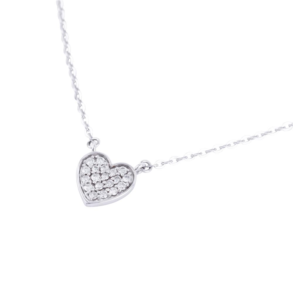 Tỏa sáng đầy lãng mạn, dây chuyền vàng trắng nổi bật với mặt trái tim phủ kín kim cương lấp lánh. Thiết kế tinh xảo mang ý nghĩa yêu thương trọn vẹn, là món quà lý tưởng để bày tỏ tình cảm hoặc tự thưởng cho bản thân.
