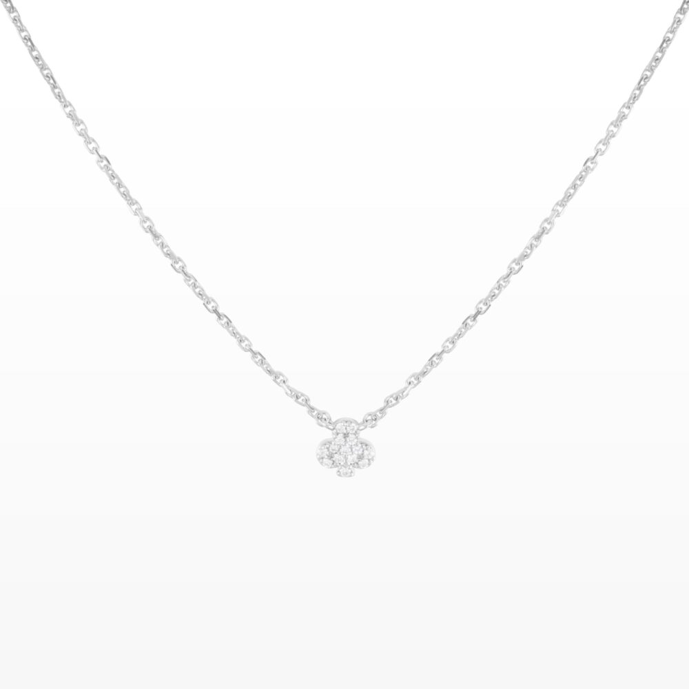 Dây chuyền kim cương Trí Lộc mang biểu tượng ♣︎ – đại diện cho trí tuệ, sự sáng suốt và nền tảng bền vững phía sau mỗi thành công. Mặt dây nhỏ gọn được kết từ nhiều viên kim cương tinh xảo, sắp xếp hài hòa tạo hiệu ứng lấp lánh vừa đủ, toát lên vẻ thanh lịch và chiều sâu nội tại.