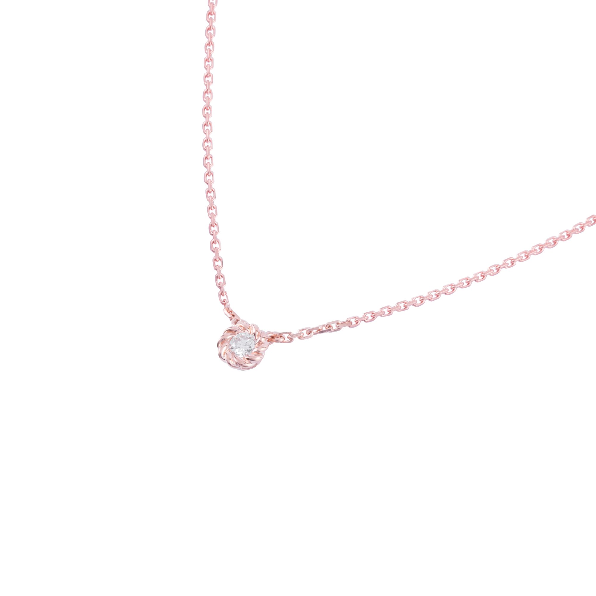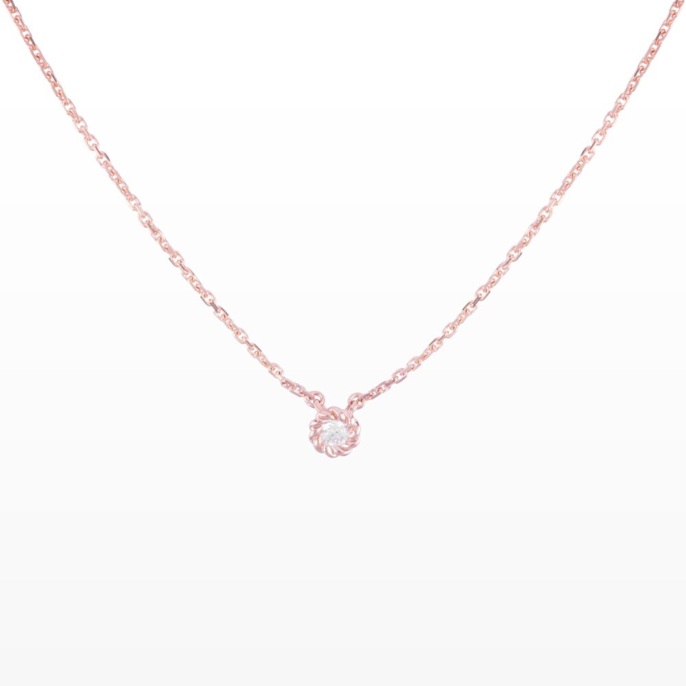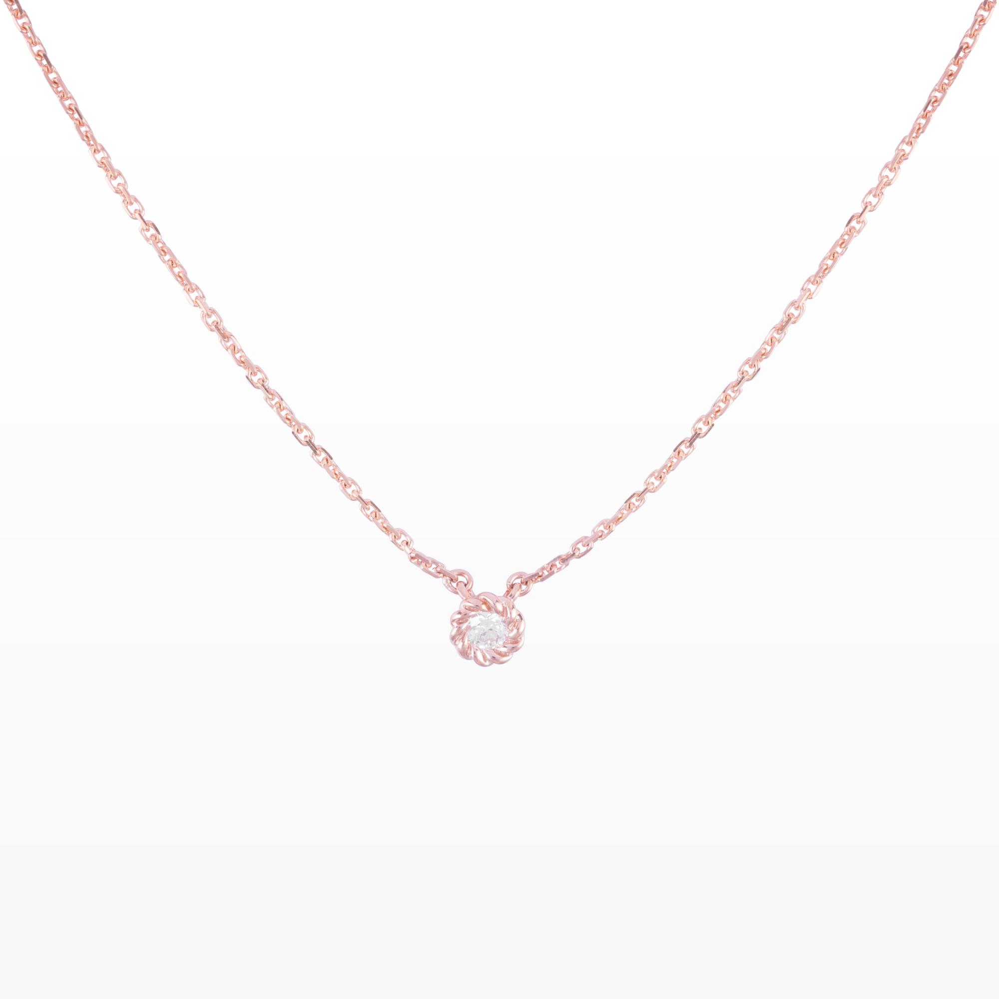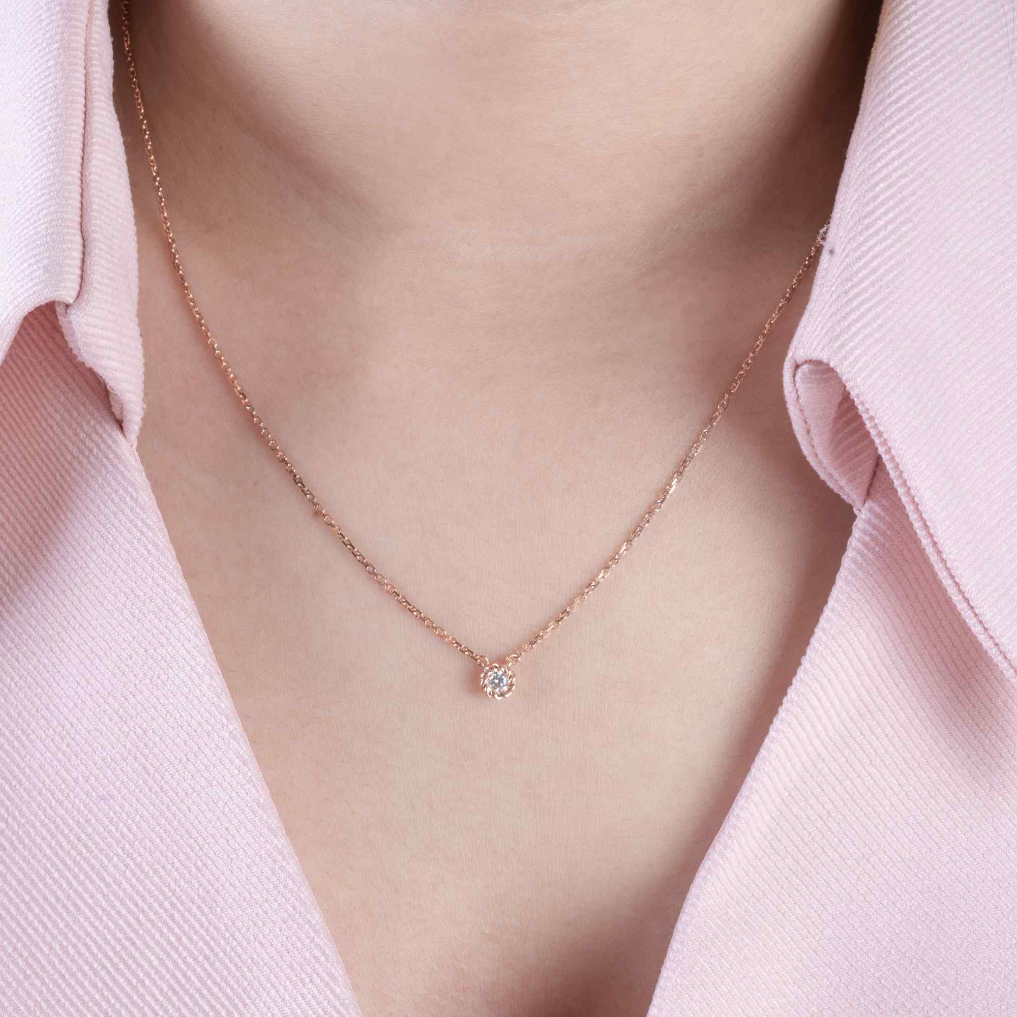 Thiết kế mặt dây chuyền nhỏ xinh với viên kim cương được ôm trọn bởi vòng xoắn mềm mại, tạo nên hiệu ứng như ánh sáng đang khẽ chuyển động. Những đường xoắn uyển chuyển giúp viên kim cương trung tâm thêm phần nổi bật, mang vẻ đẹp tinh tế nhưng không phô trương.