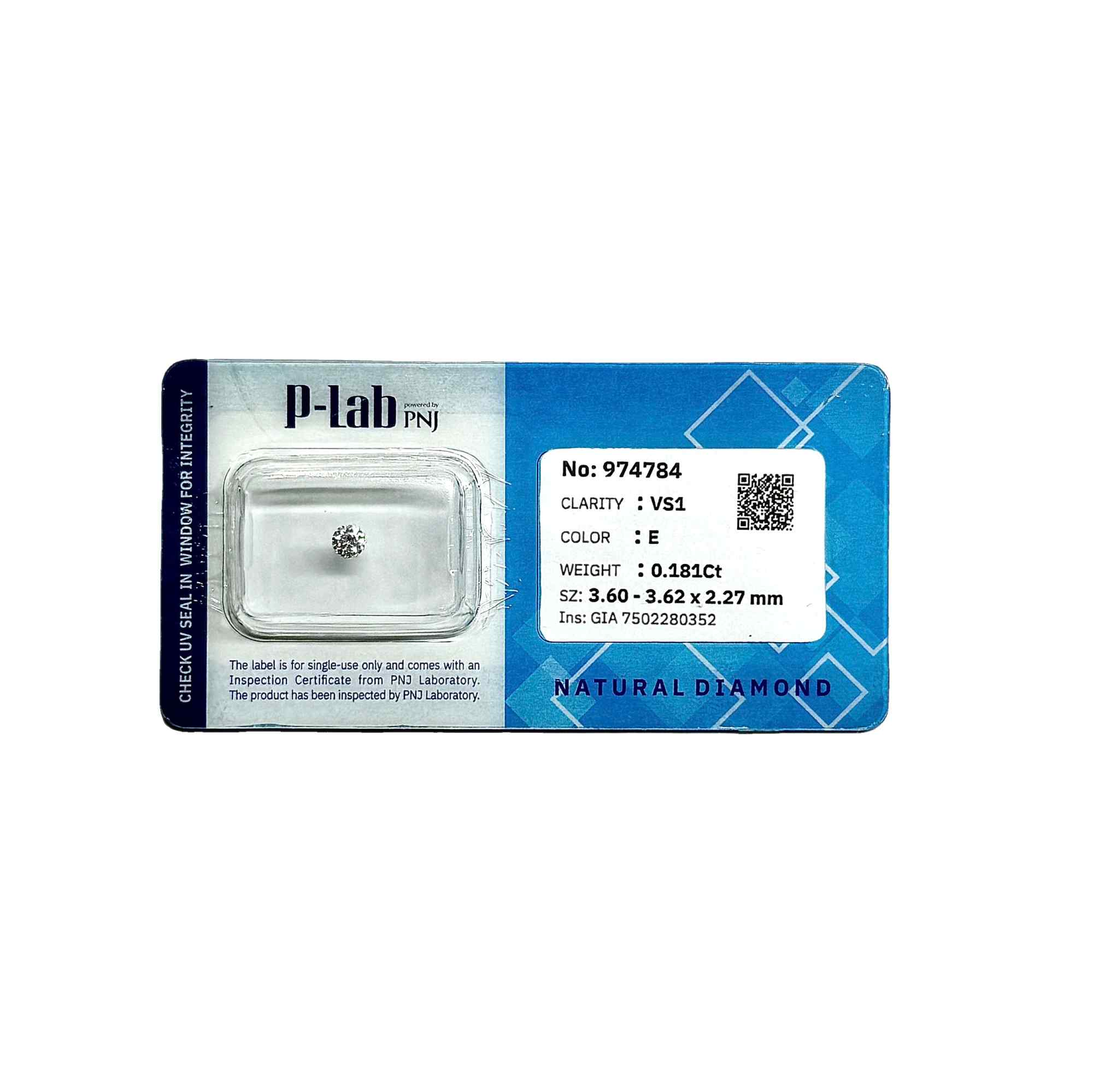 | Trọng lượng: | 0.181Ct |