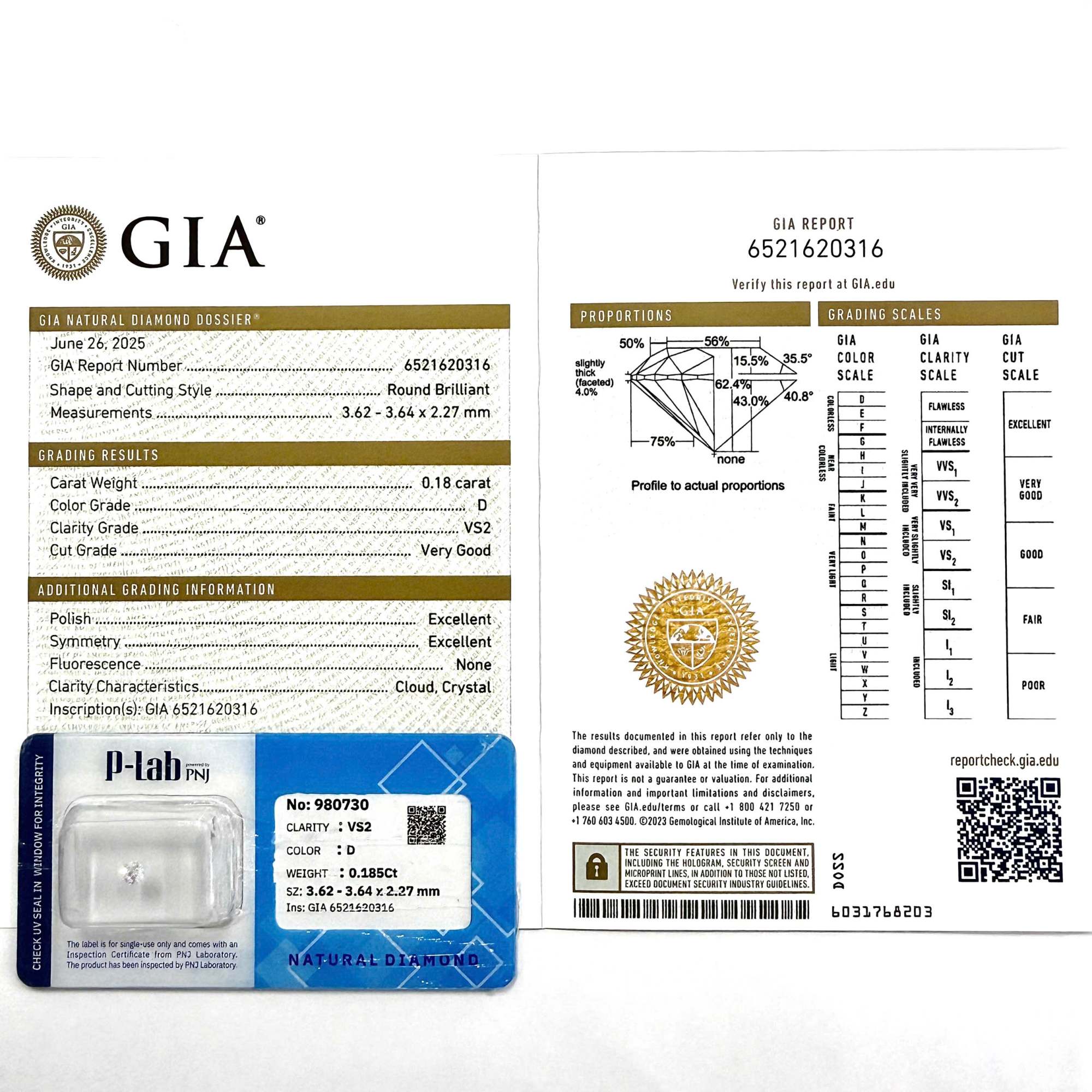 Kim cương viên 3.62 – 3.64 D VS2 GIA DDD0028574