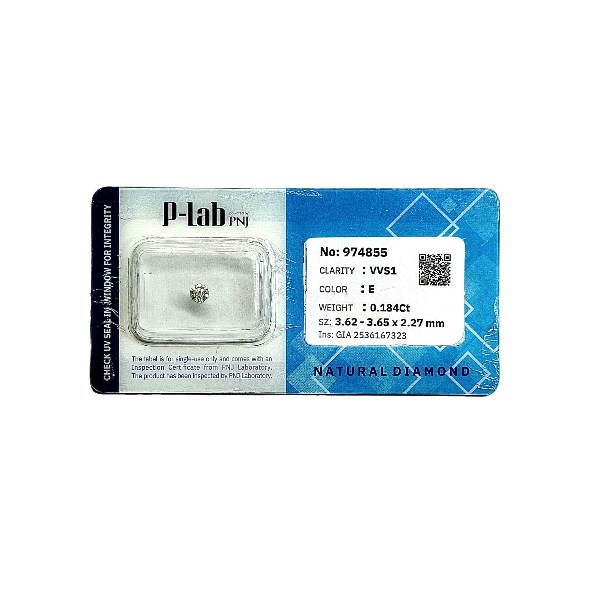 | Trọng lượng: | 0.184Ct |