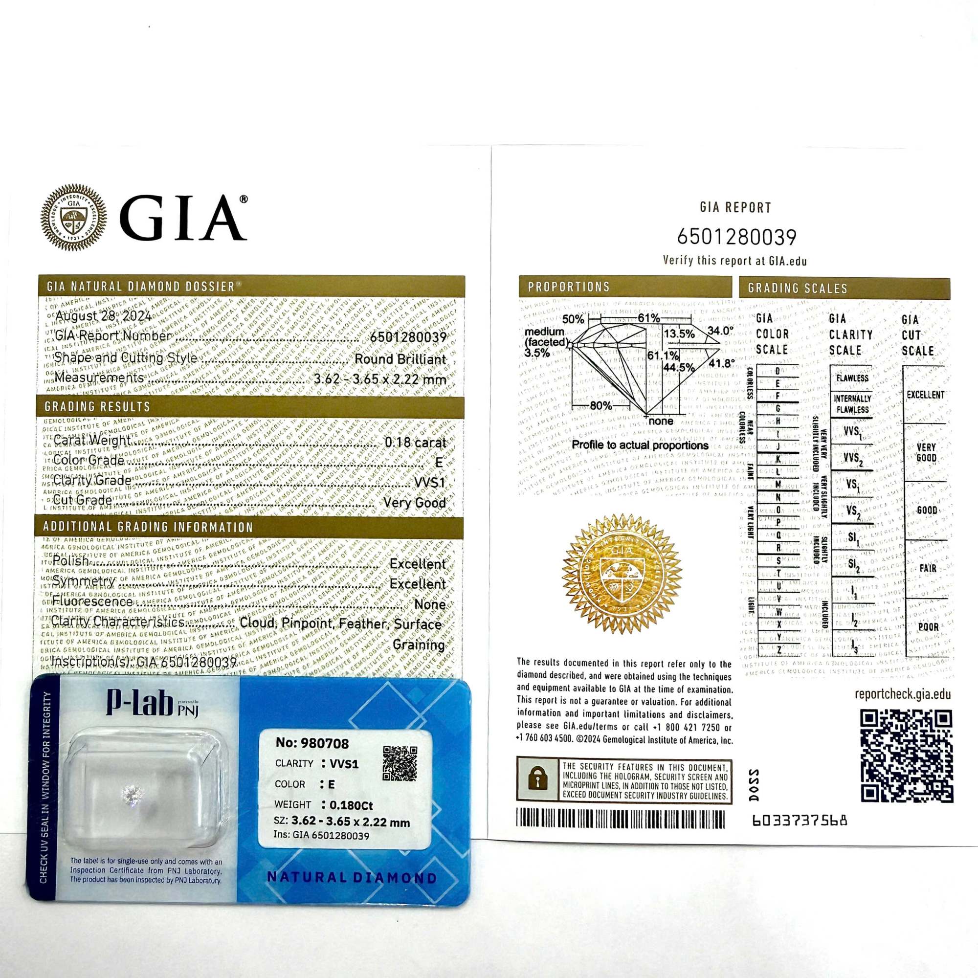 Kim cương viên 3.62 – 3.65 E VVS1 GIA DDD0028618
