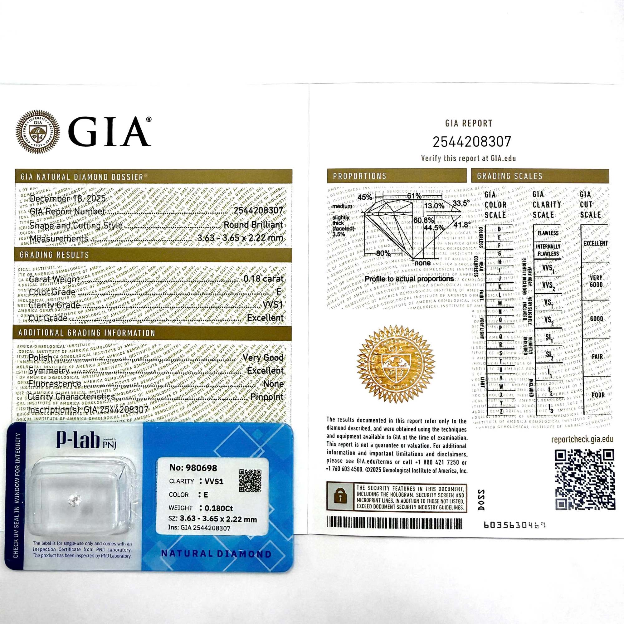 | Trọng lượng: | 0.180Ct |