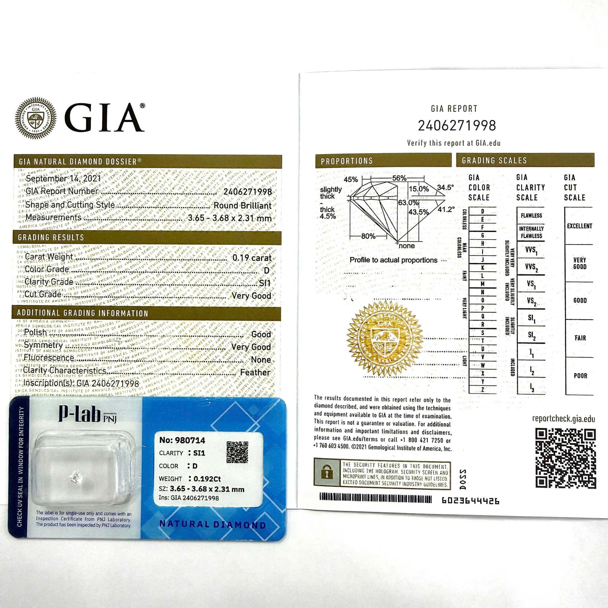 Kim cương viên 3.65 – 3.68 D SI1 GIA DDD0028597