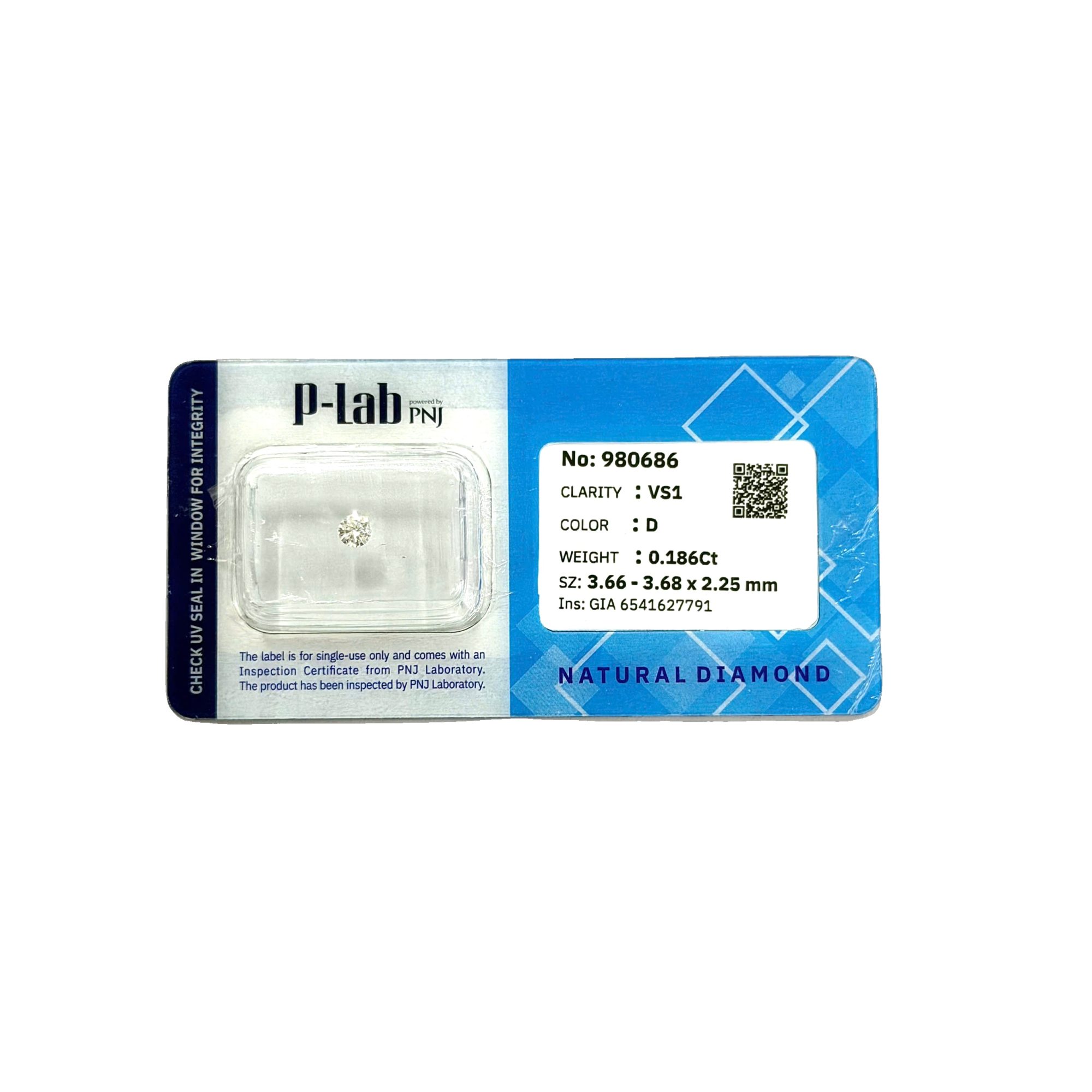 | Trọng lượng: | 0.186Ct |