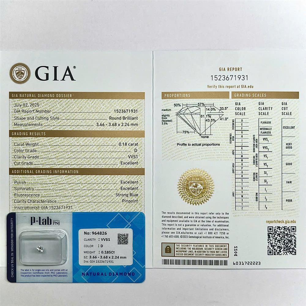 Viên kim cương 3.6LY hội tụ sắc trắng D tinh khiết cùng độ tinh khiết VVS1 xuất sắc, mang đến cảm giác sáng trong và chuẩn mực cao cấp. Ánh lửa gọn gàng, phản xạ rõ ràng tạo vẻ đẹp tinh xảo và trang nhã. Phù hợp chế tác trang sức tối giản, tôn vinh gu thẩm mỹ tinh tế và giá trị bền vững.