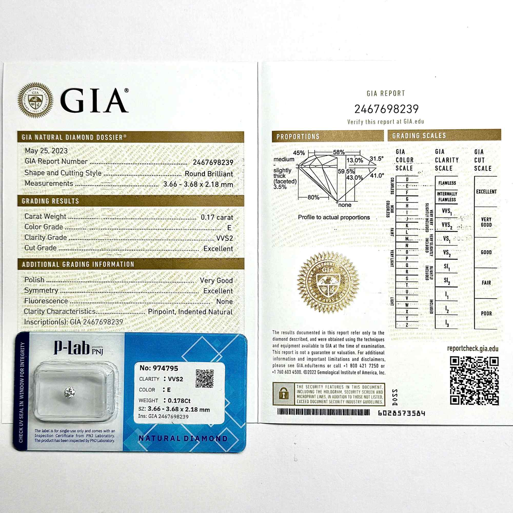 Kim cương viên 3.66 – 3.68 E VVS2 GIA DDD0025931