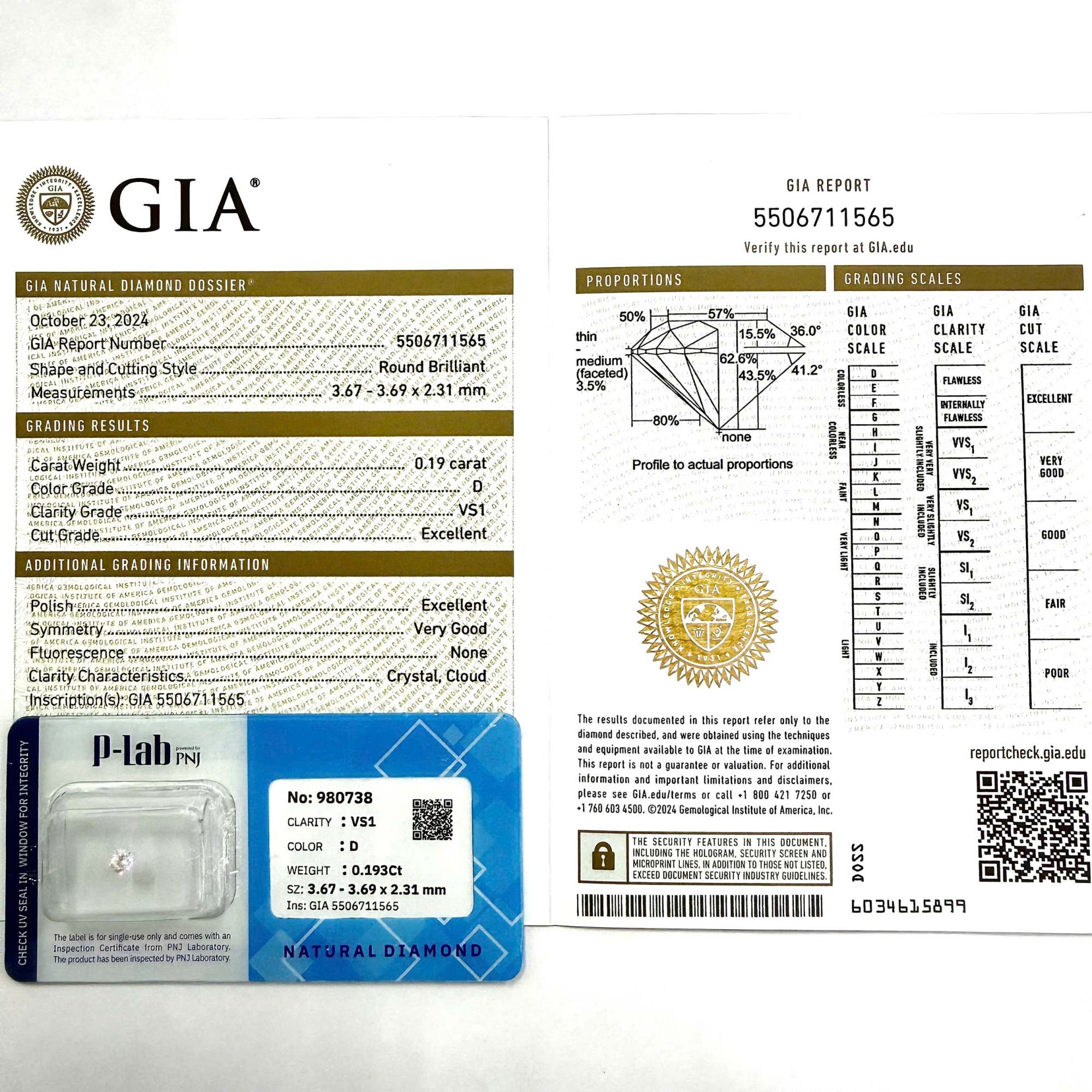 Kim cương viên 3.67 – 3.69 D VS1 GIA DDD0028593