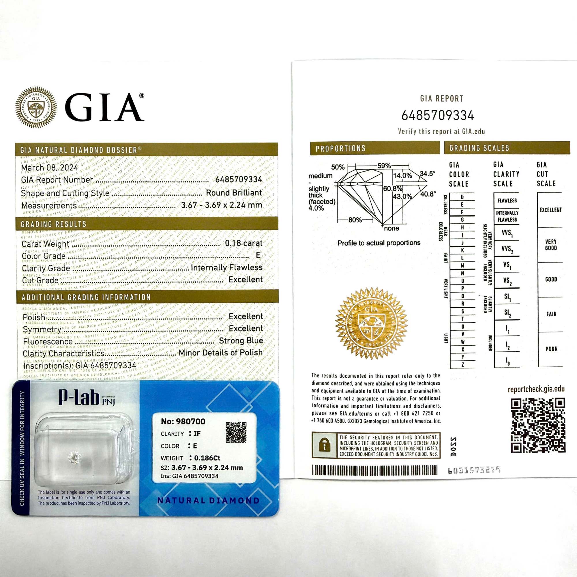 Viên kim cương 3.6LY E/IF sở hữu sắc trắng tinh tế gần như tuyệt đối cùng độ tinh khiết hoàn hảo, mang đến vẻ đẹp trong trẻo và thanh lịch đầy cuốn hút. Ánh sáng phản chiếu mềm mại nhưng rực rỡ, tạo cảm giác sang trọng bền vững. Lý tưởng chế tác nhẫn solitaire, dây chuyền hoặc hoa tai với thiết kế tối giản, tôn vinh trọn vẹn viên chủ.