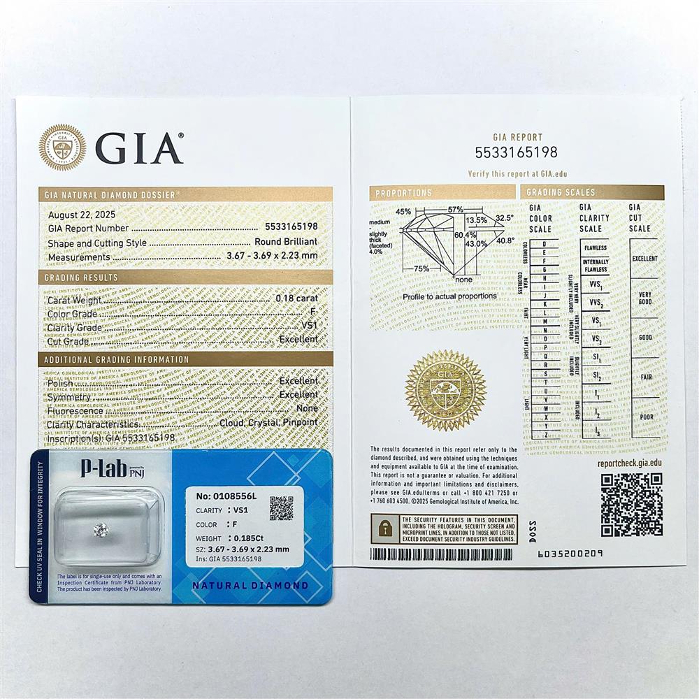 Viên kim cương 3.6LY F/VS1 mang sắc trắng sáng tinh tế cùng độ trong rõ nét, tạo cảm giác thanh lịch và thuần khiết. Dù nhỏ nhắn, viên đá vẫn tỏa ánh sáng sắc sảo và sang trọng. Phù hợp chế tác nhẫn thanh mảnh, bông tai hoặc mặt dây chuyền tối giản. Họa tiết nhẹ nhàng sẽ làm nổi bật vẻ đẹp tự nhiên và lấp lánh của viên chủ.
