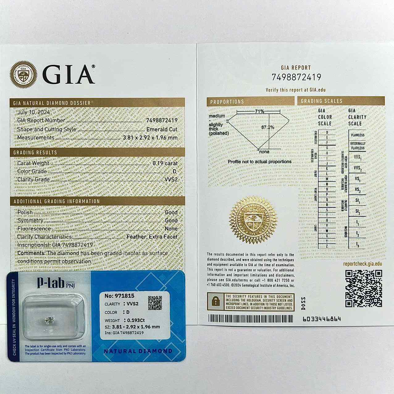 Viên kim cương EMERALD 3.8–2.9LY D/VVS2 gây ấn tượng với sắc trắng D tinh khiết và độ tinh khiết cao, rất phù hợp với kiểu cắt emerald đề cao độ trong và các mặt cắt bậc rõ nét. Hình dáng chữ nhật thanh lịch mang vẻ đẹp cổ điển. Lý tưởng để chế tác nhẫn solitaire, nhẫn halo hoặc mặt dây chuyền tinh giản.