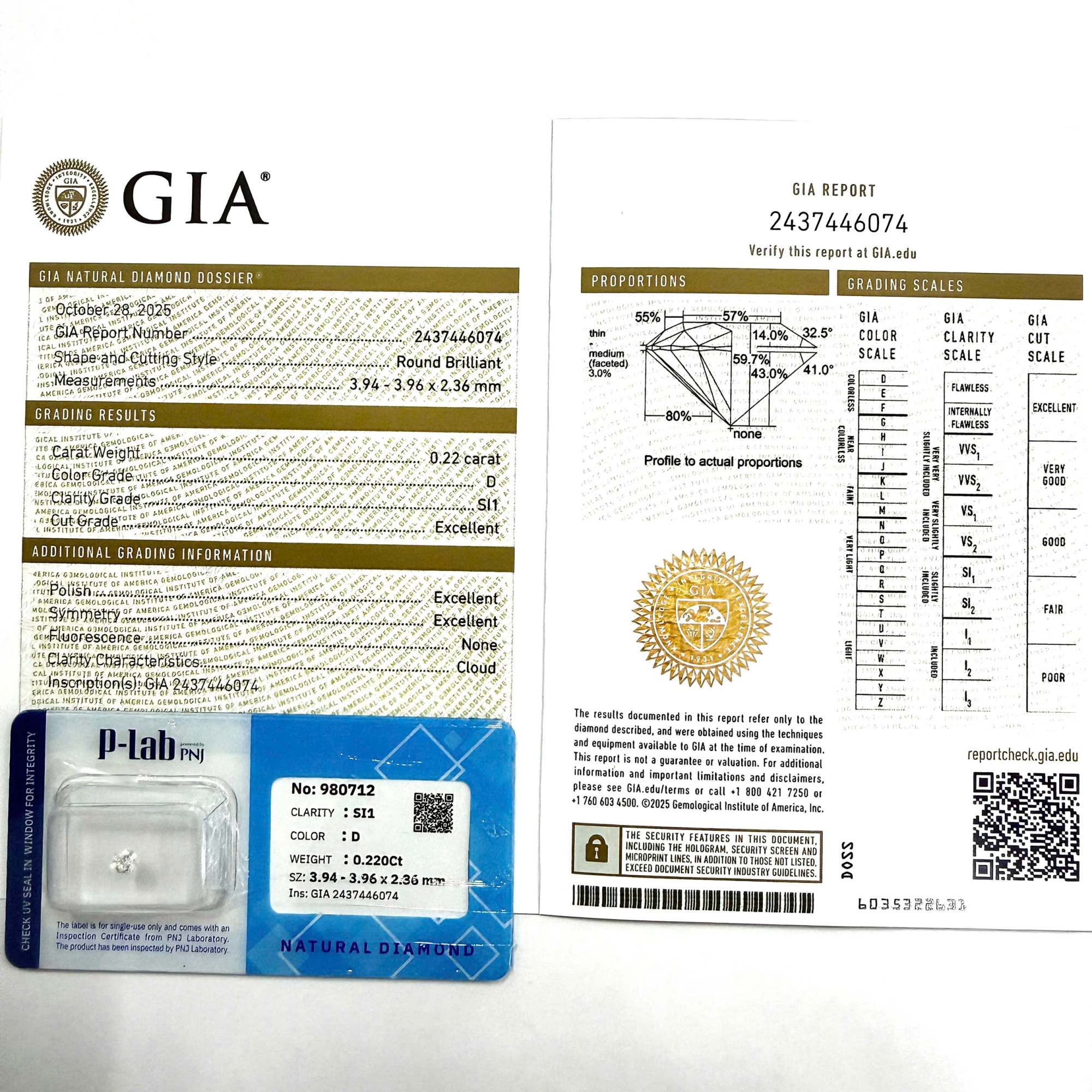 | Trọng lượng: | 0.220Ct |