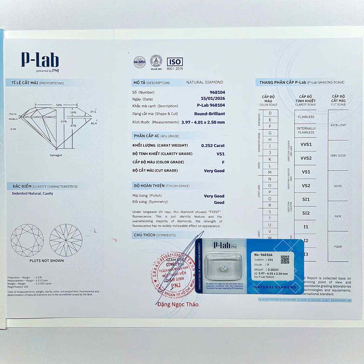 Kim cương viên 3.97 – 4.01 F VS1 P-LAB DDD4014343