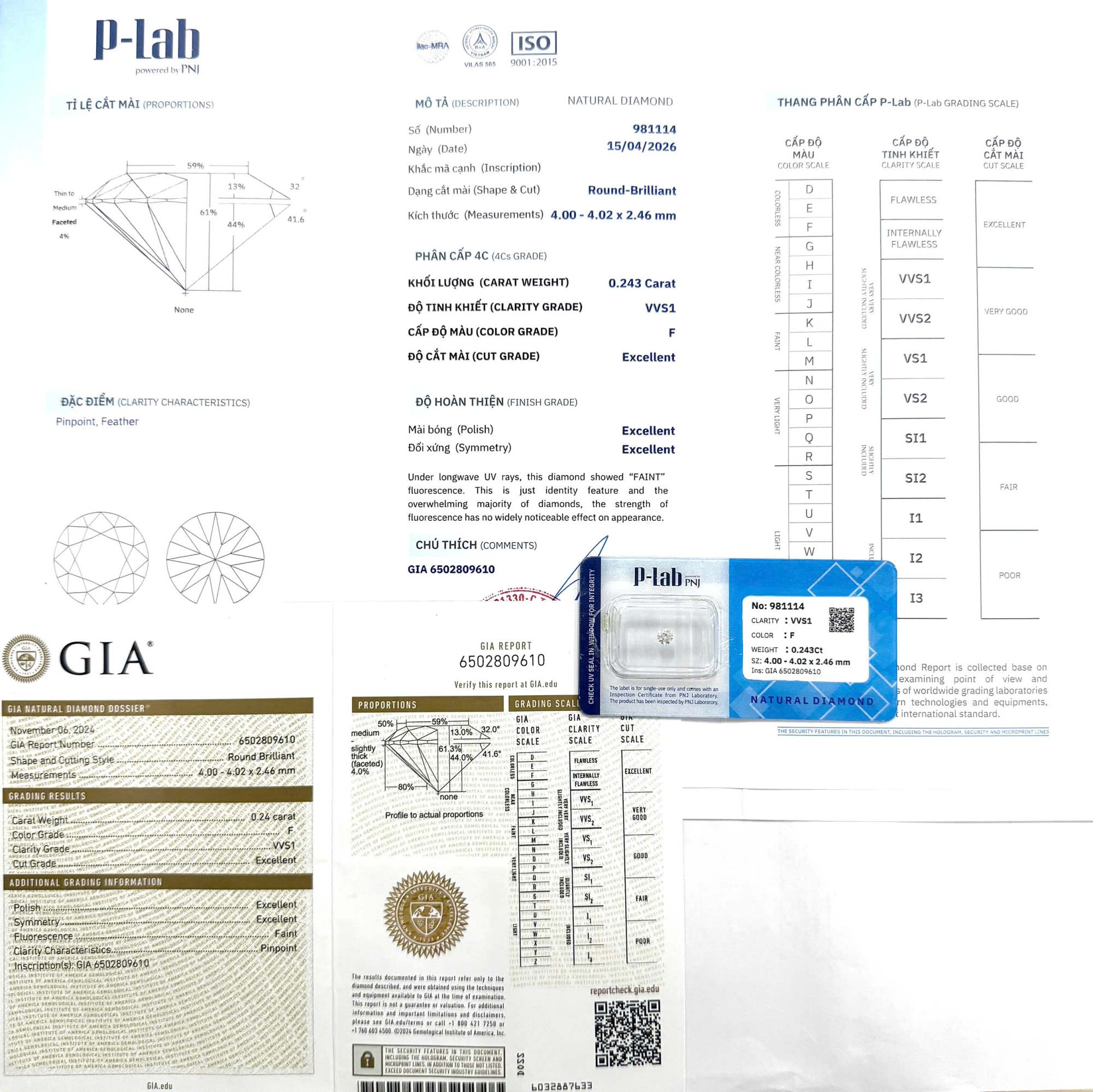 Viên kim cương 4.0LY F/VVS1 toát lên vẻ đẹp thanh lịch với sắc trắng sáng và độ tinh khiết gần như hoàn hảo, mang đến hiệu ứng ánh sáng rực rỡ, sắc nét đầy cuốn hút. Kích thước cân đối giúp viên chủ nổi bật nhưng vẫn tinh tế. Phù hợp chế tác nhẫn solitaire, dây chuyền hoặc hoa tai thiết kế tối giản, tôn vinh trọn vẹn vẻ đẹp.