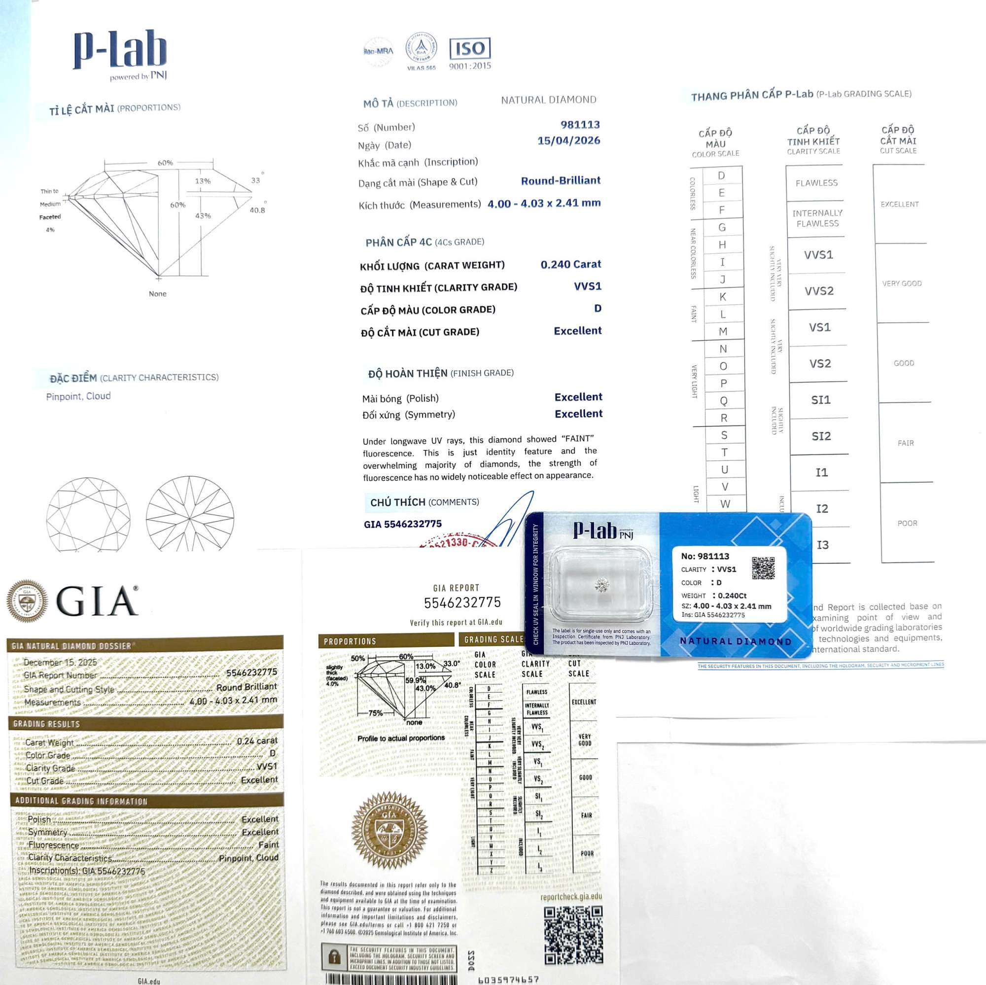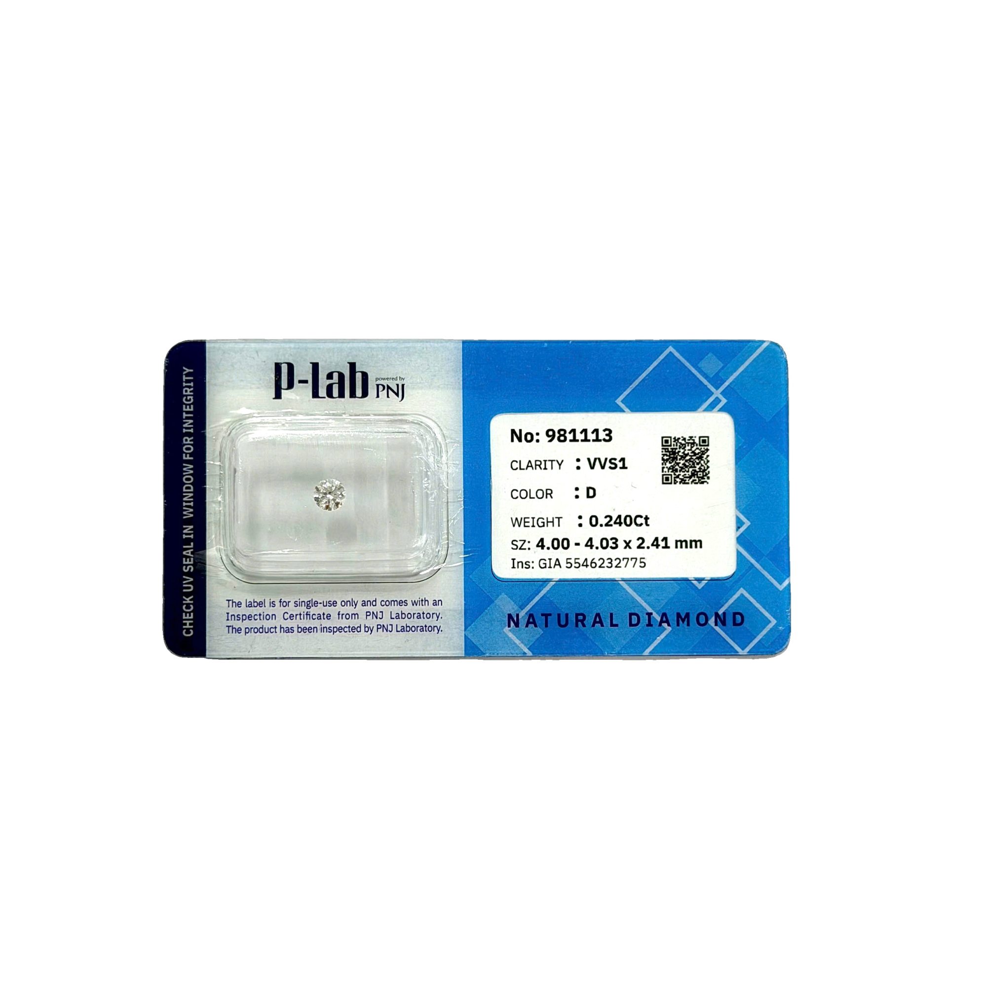 | Trọng lượng: | 0.240Ct |
