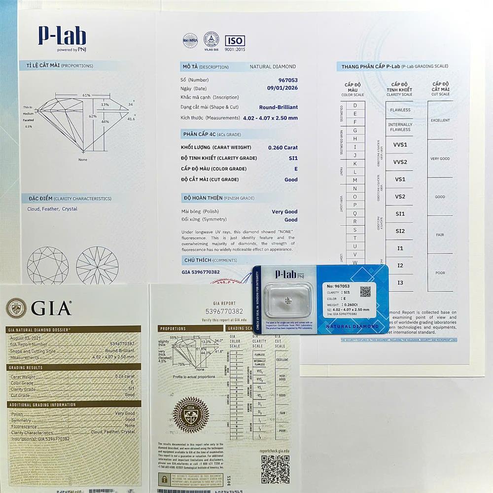 Viên kim cương 4LY sắc E sở hữu sắc trắng sáng tinh tế, mang cảm giác thanh lịch và gọn gàng. Độ tinh khiết SI1 giúp ánh phản chiếu hài hòa, vẫn đảm bảo độ trong khi nhìn tổng thể. Phù hợp chế tác nhẫn hoặc mặt dây tinh giản, dễ ứng dụng và giữ được nét sang trọng nhẹ nhàng.