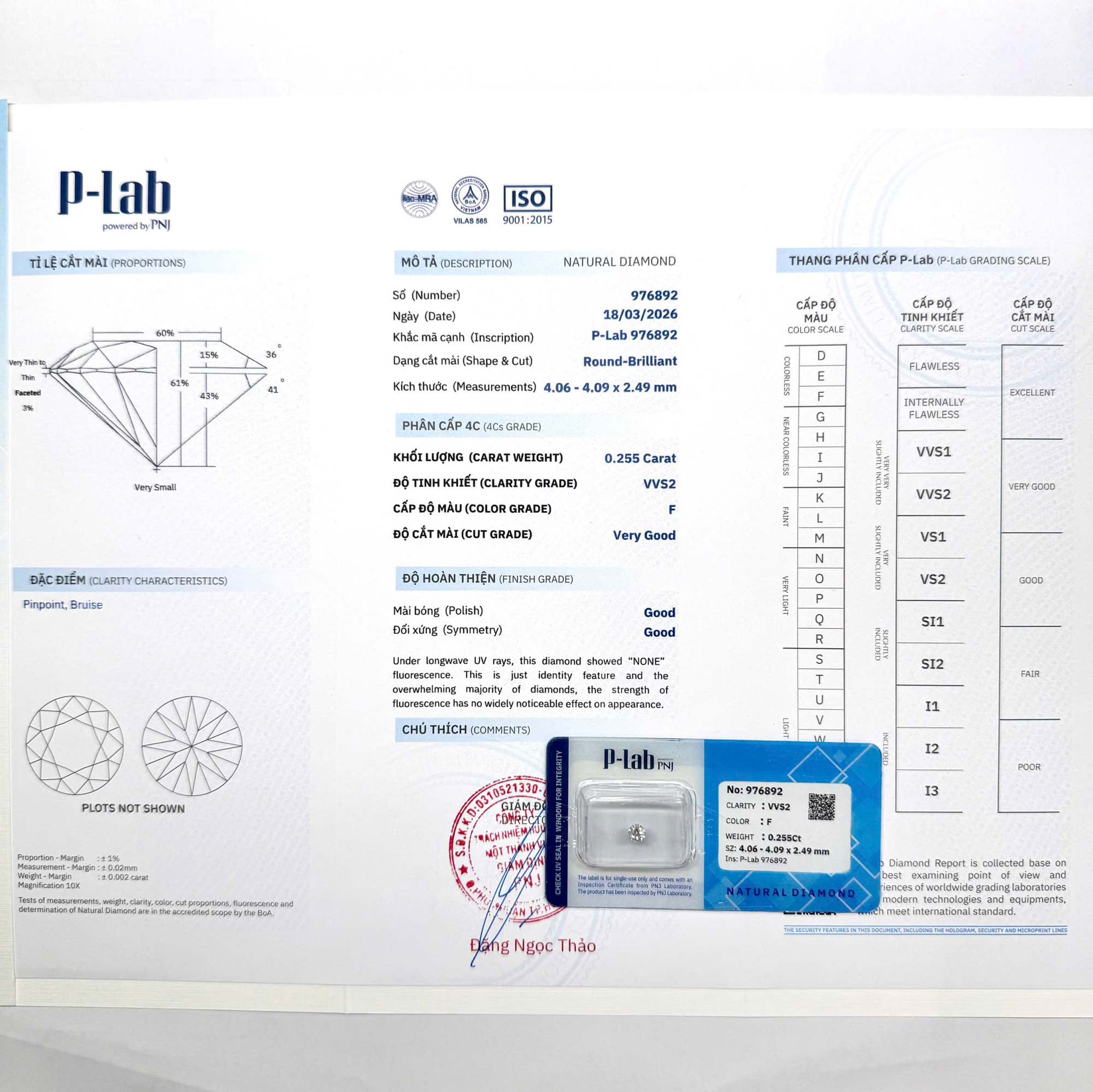 Kim cương viên 4.06 – 4.09 F VVS2 P-LAB DDD4014913
