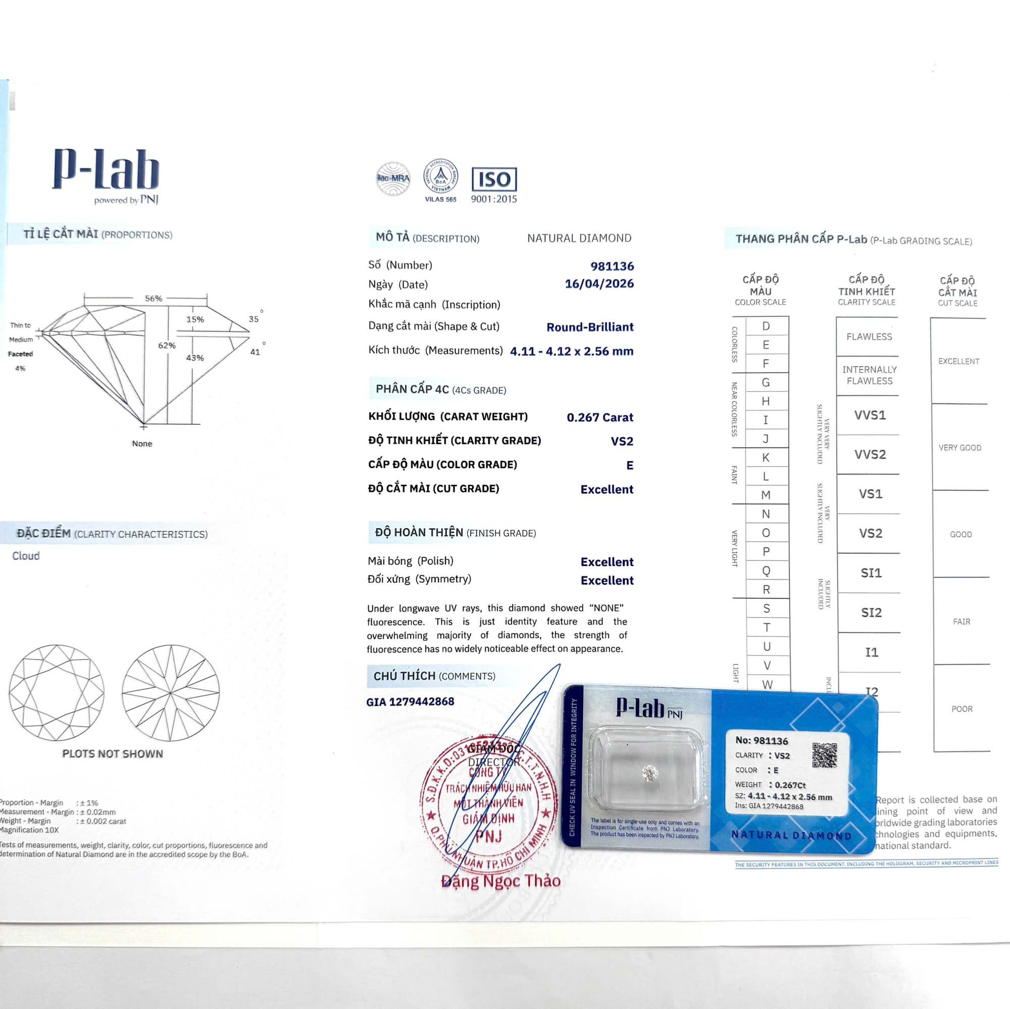 Kim cương viên 4.11 – 4.12 E VS2 P-LAB DDD4016996
