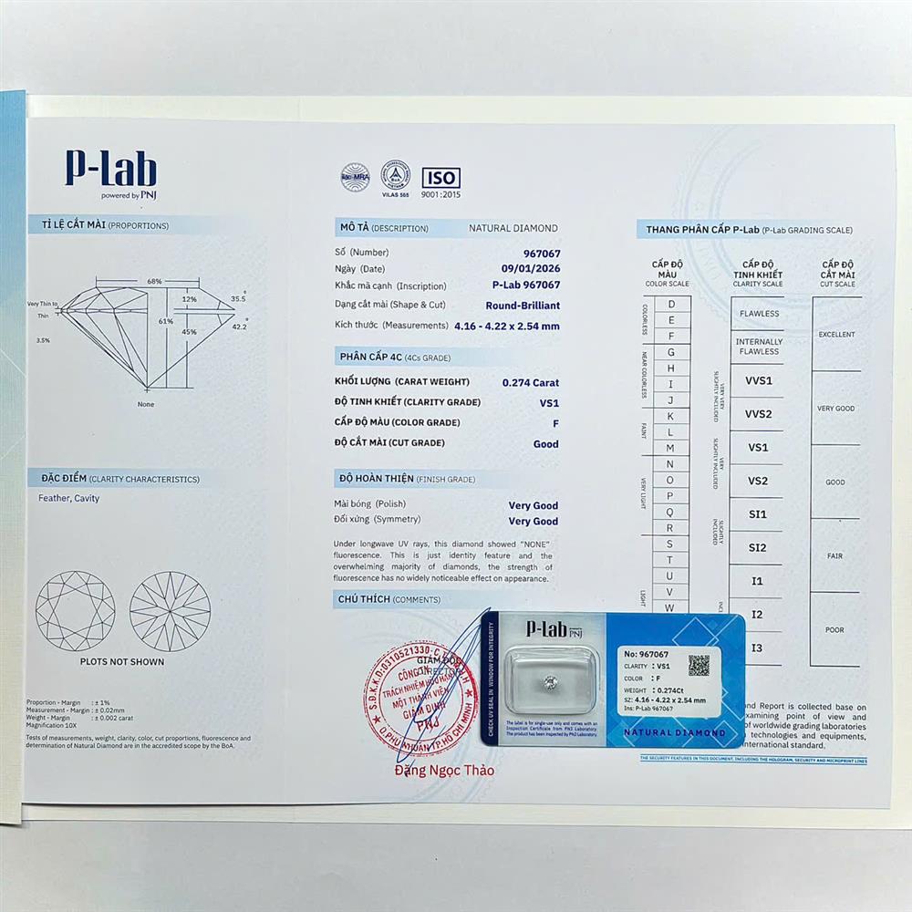Kim cương viên 4.16 – 4.22 F VS1 P-LAB DDD4014322