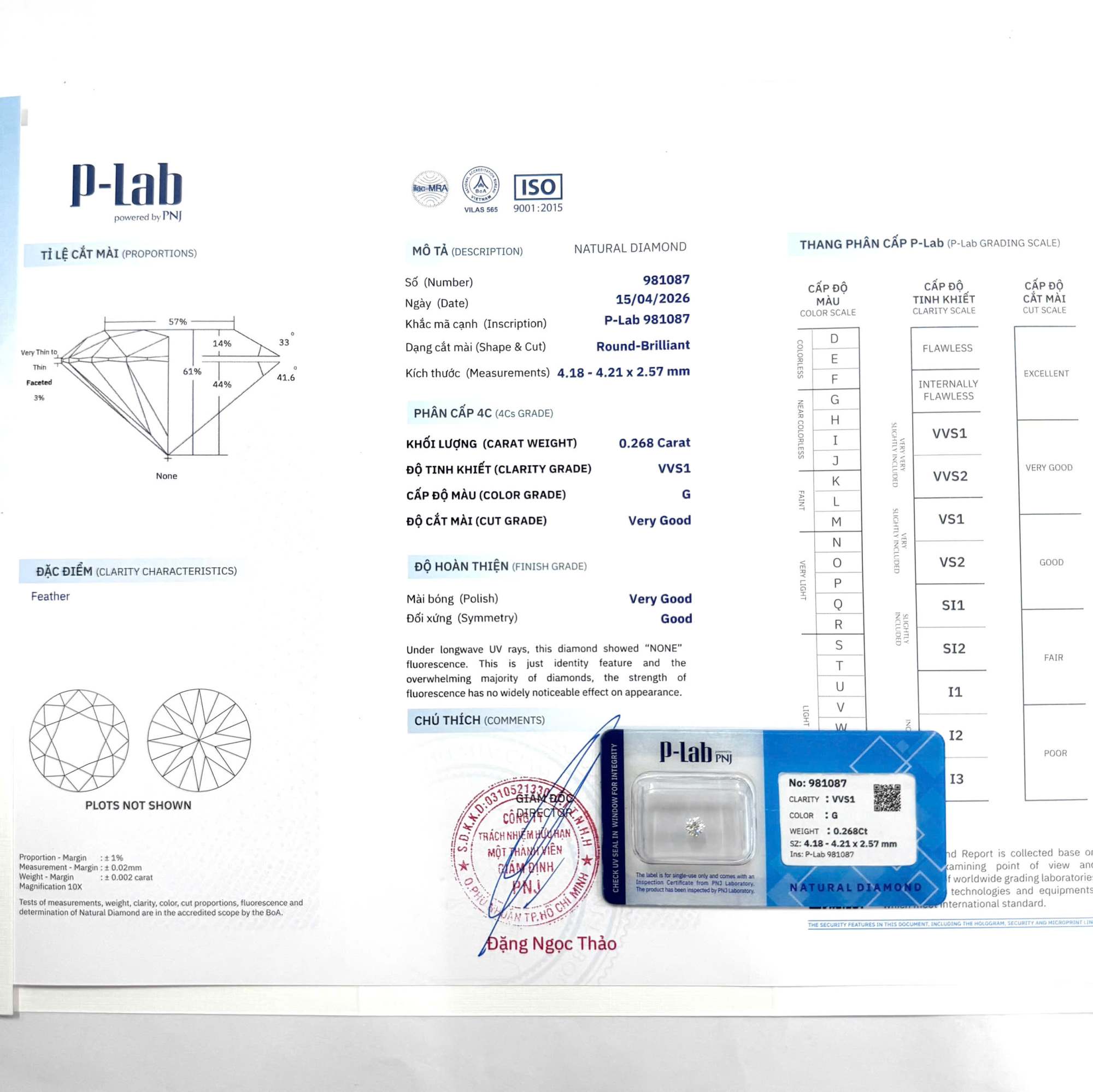 | Trọng lượng: | 0.268Ct |