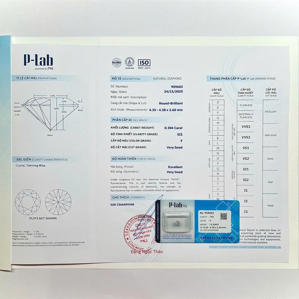 Viên kim cương 4.3LY F/SI1 mang sắc trắng sáng thanh lịch cùng ánh lửa hài hòa, tạo cảm giác tinh tế và dễ kết hợp với nhiều kiểu dáng trang sức. Kích thước nhỏ gọn nhưng bắt sáng rất tốt. Phù hợp chế tác nhẫn solitaire, hoa tai đinh hoặc mặt dây tối giản. Thiết kế thanh mảnh sẽ làm viên chủ trở nên nổi bật và cuốn hút hơn.