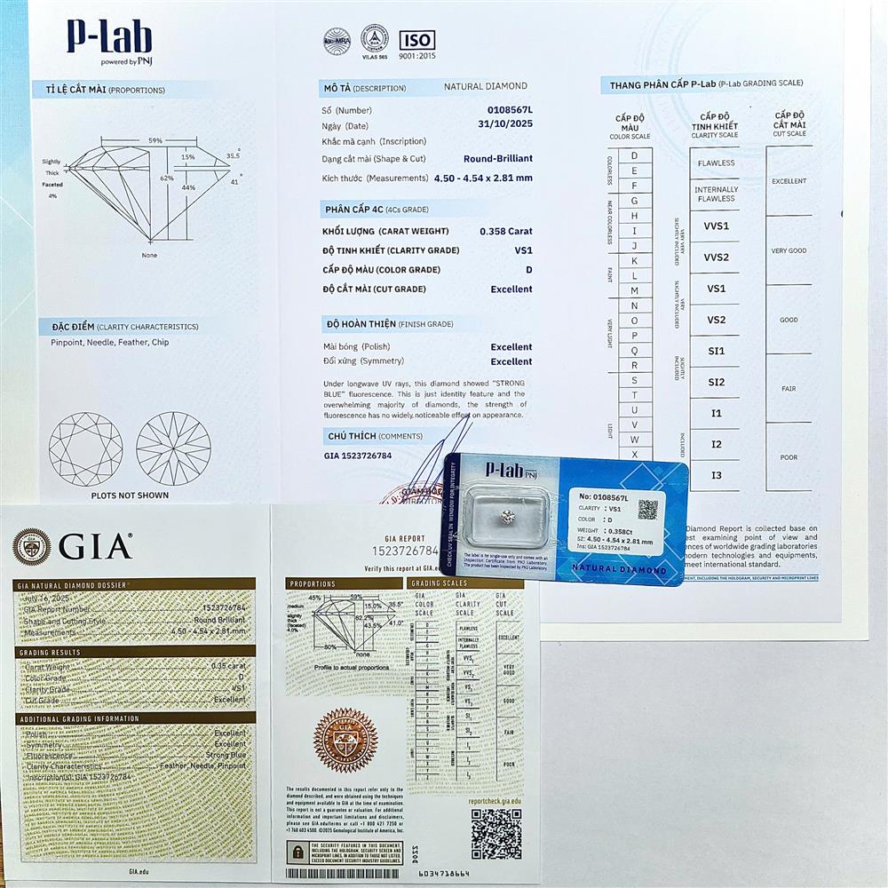 Viên kim cương 4.5LY D/VS1 mang sắc trắng tinh khiết hàng đầu cùng độ trong rõ nét, gợi cảm giác trang nhã và chuẩn mực hoàn hảo. Kích thước nhỏ gọn, rất phù hợp để chế tác nhẫn thanh mảnh, mặt dây chuyền hoặc bông tai tối giản. Khi kết hợp họa tiết nhẹ nhàng, ánh sáng sắc nét và vẻ đẹp tinh tế của viên chủ sẽ được tôn vinh trọn vẹn.