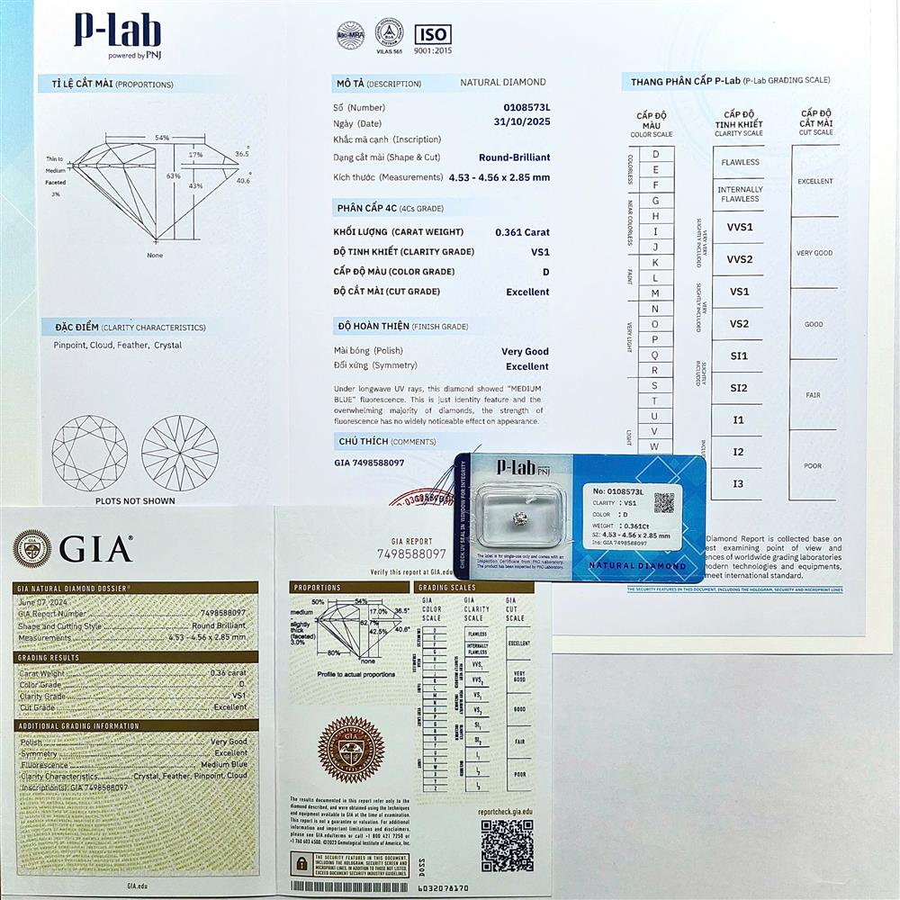 Kim cương viên 4.53 – 4.56 D VS1 P-LAB, GIA DDD0018991