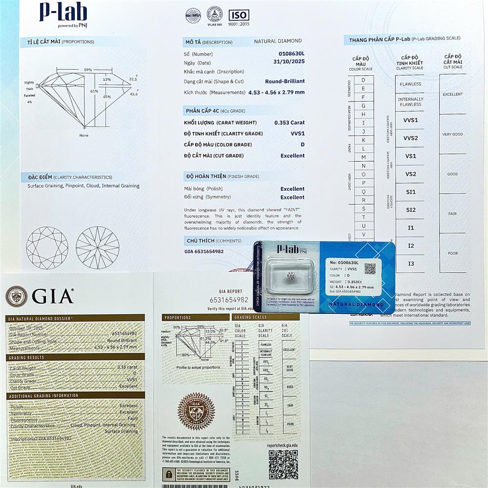 Viên kim cương 4.5LY D/VVS1 sở hữu sắc trắng tinh khiết bậc nhất và độ trong xuất sắc, biểu trưng cho vẻ đẹp hoàn mỹ và tinh thần thanh cao. Kích thước nhỏ gọn, lý tưởng để chế tác nhẫn tinh tế, mặt dây chuyền tối giản hoặc bông tai đơn sắc. Với họa tiết nhẹ nhàng, viên chủ sẽ tỏa sáng rực rỡ và sang trọng một cách đầy tự nhiên.