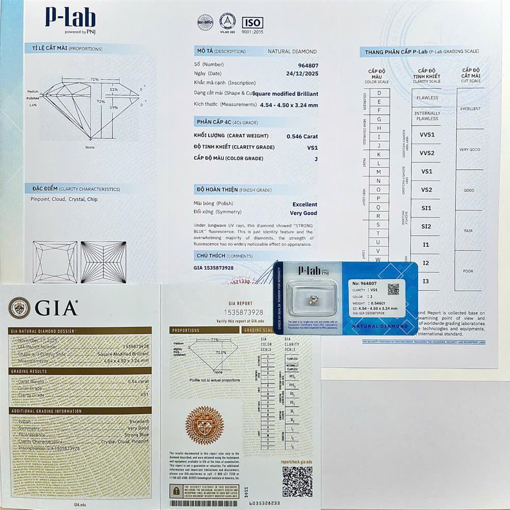 Viên kim cương Square 4.5LY J/VS1 sở hữu kích thước hài hòa, ánh lửa ổn định và độ tinh khiết tốt trong phân khúc VS1. Tông màu J mang sắc ấm nhẹ, giúp viên đá trông mềm mại, dễ phối với nhiều thiết kế trang sức. Phù hợp khách hàng tìm kiếm vẻ đẹp tinh tế, giá trị sử dụng cao và tính ứng dụng thực tế.