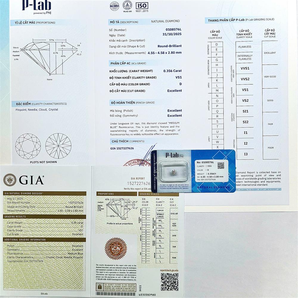 Kim cương viên 4.55 – 4.58 D VS1 P-LAB, GIA DDD0018987