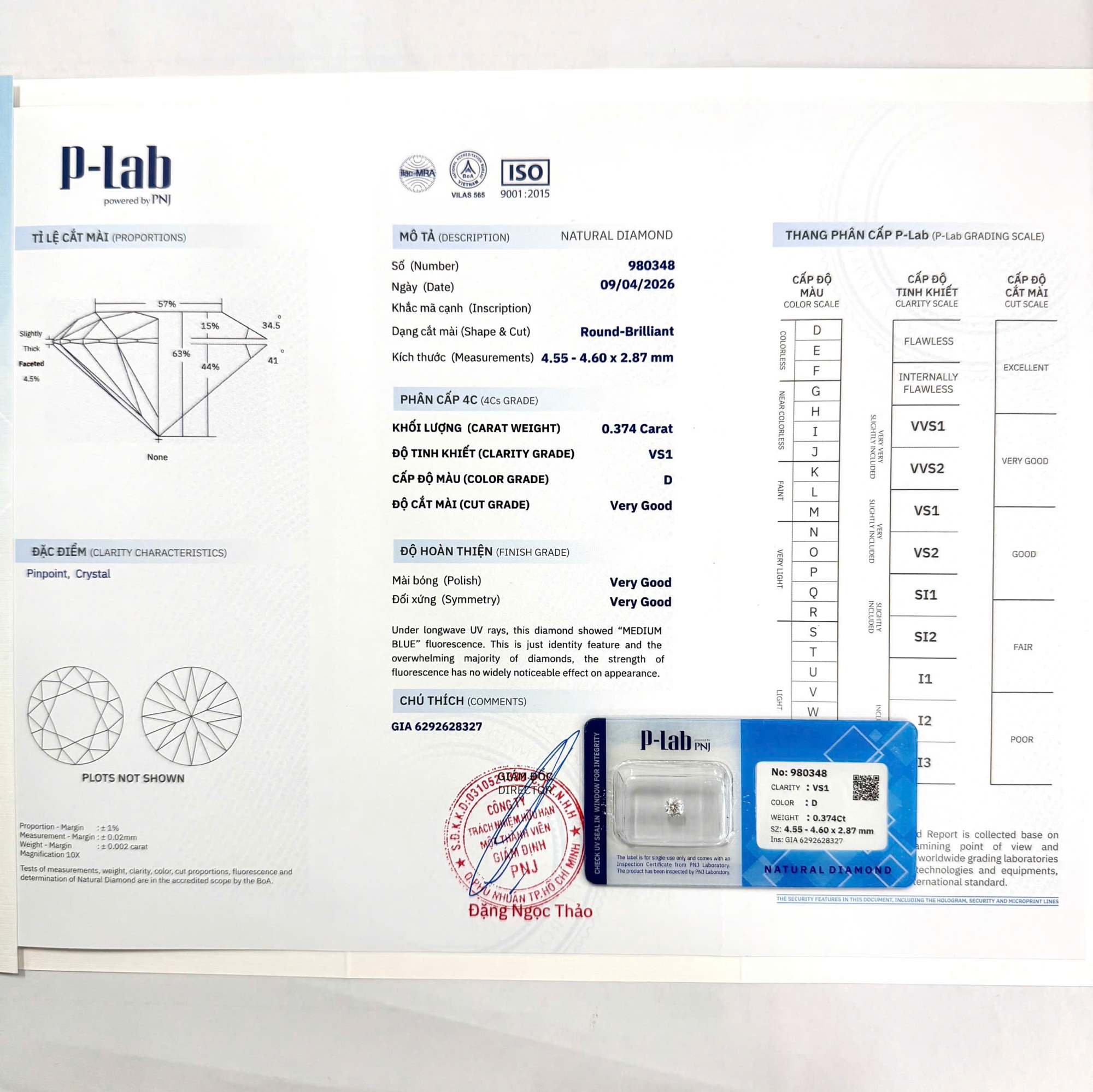 Viên kim cương 4.5–4.6LY D/VS1 gây ấn tượng với sắc trắng D tinh khiết cùng độ trong vượt trội, tạo nên hiệu ứng ánh sáng bùng nổ, lấp lánh sắc sảo ở mọi góc nhìn. Vẻ đẹp đẳng cấp nhưng vẫn cân bằng giá trị, thể hiện gu thẩm mỹ tinh tế. Lý tưởng chế tác nhẫn solitaire, dây chuyền hoặc hoa tai thiết kế tối giản, tôn vinh viên chủ.