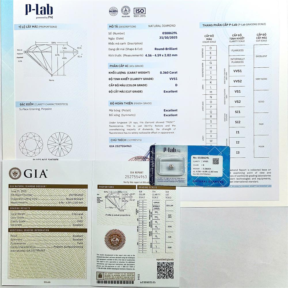 Kim cương viên 4.56 – 4.59 D VVS1 P-LAB, GIA DDD0019026