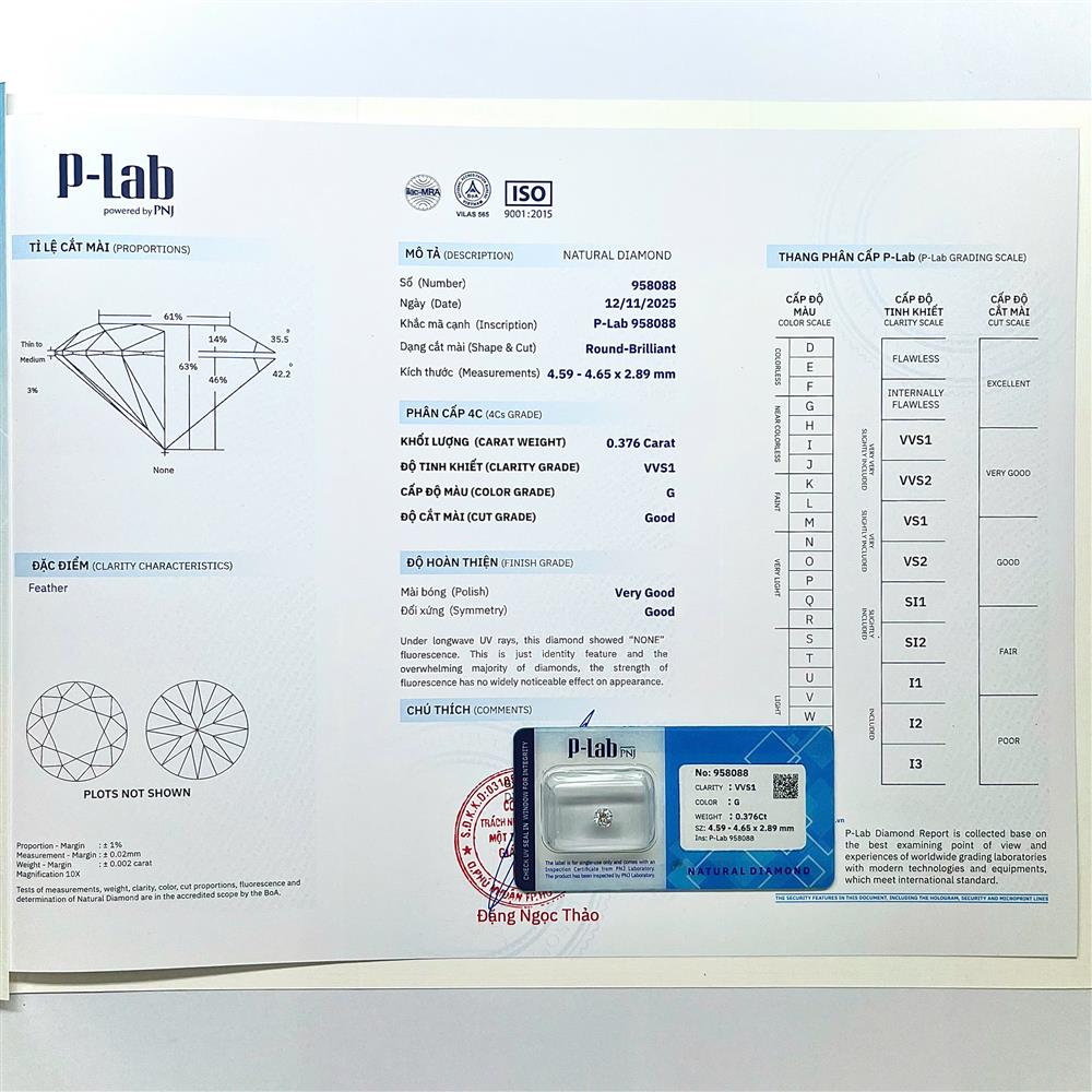 | Trọng lượng: | 0.376Ct |