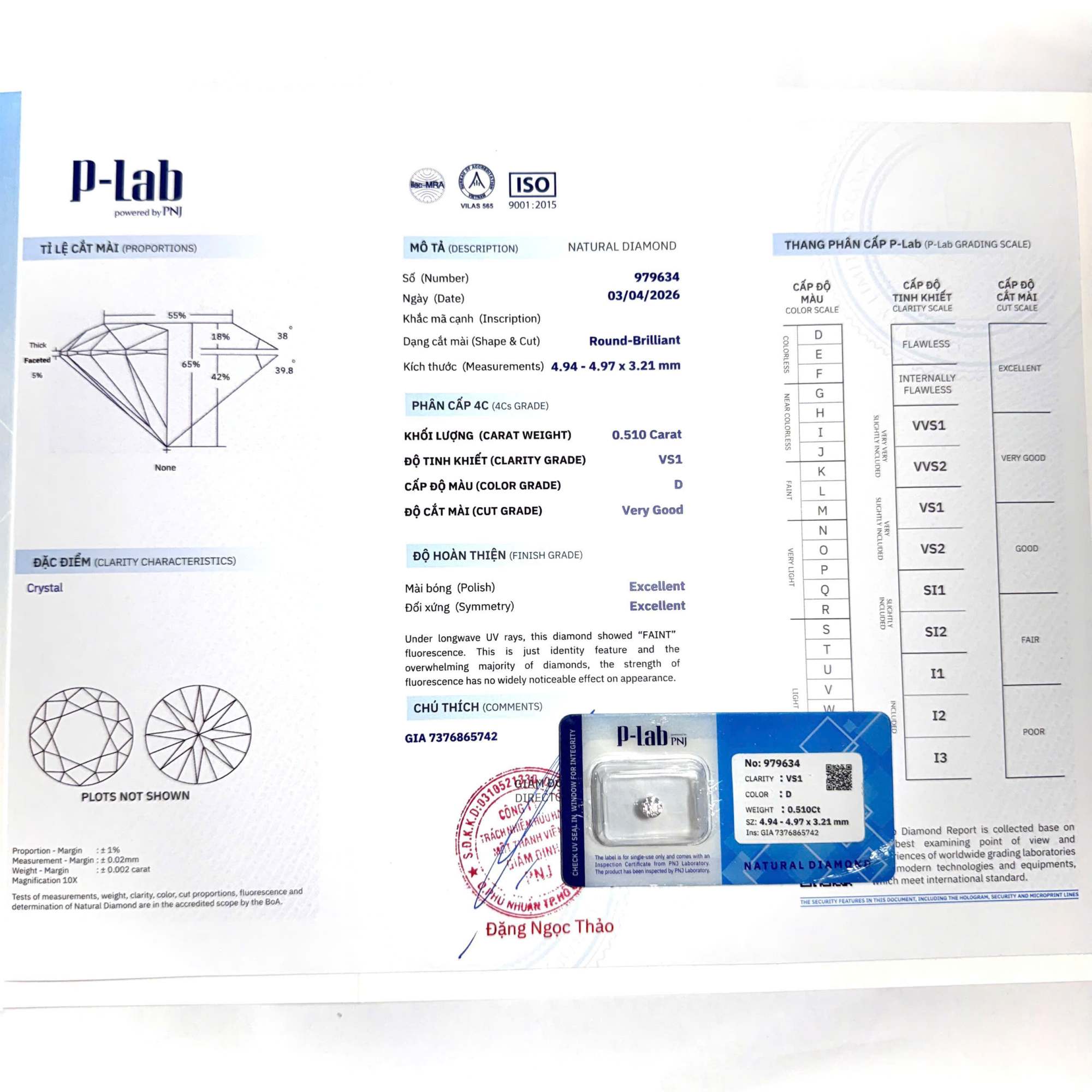 Kim cương viên 4.94 – 4.97 D VS1 P-LAB DDD4016573