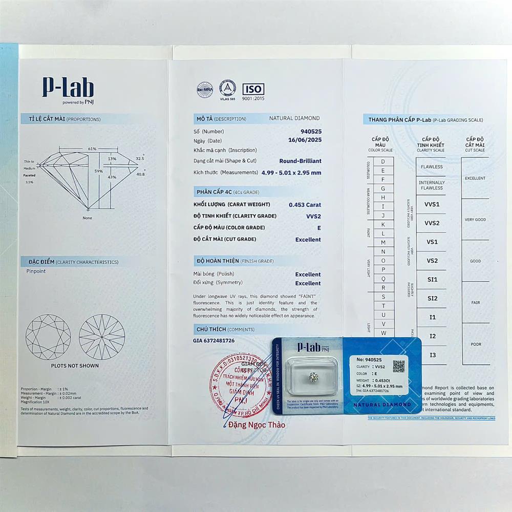 Viên kim cương 4.9-5.0LY sắc E sở hữu sắc trắng sáng tinh khiết, mang lại cảm giác sang trọng và thanh lịch. Độ tinh khiết VVS2 cho thấy cấu trúc gần như hoàn hảo, ánh lửa sắc nét và sống động. Rất phù hợp cho nhẫn đính hôn hoặc mặt dây tinh giản, tôn trọn vẻ đẹp thuần khiết và đẳng cấp.