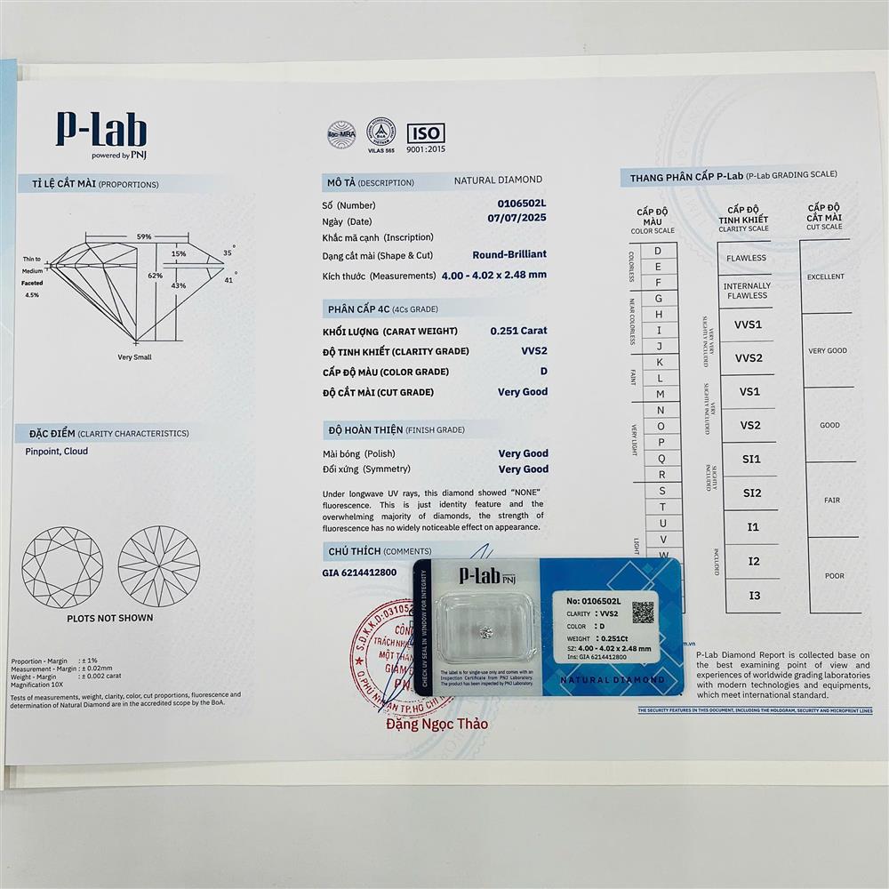 Viên kim cương 4.0LY D/VVS2 mang ý nghĩa thuần khiết, hoàn hảo và đẳng cấp, lý tưởng để chế tác nhẫn solitaire, mặt dây chuyền hoặc bông tai sang trọng. Thiết kế họa tiết đơn giản, tinh tế giúp tôn lên ánh sáng trắng rực rỡ và độ tinh xảo của viên chủ, tạo nên vẻ đẹp thanh lịch, quý phái.