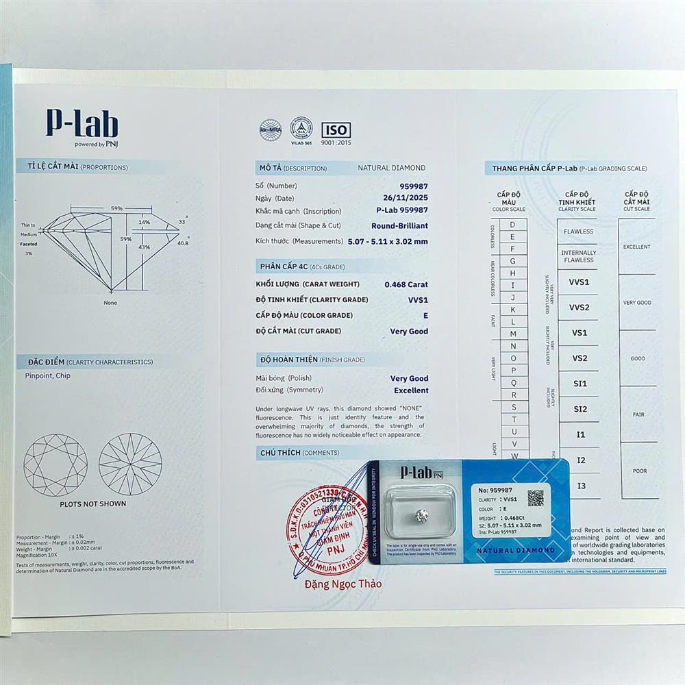 Viên kim cương 5.0 5.1LY E/VVS1 mang vẻ sáng mịn và tinh tế, ánh sáng lan ra nhẹ nhưng rõ ràng như một điểm nhấn đầy tự tin. Vẻ đẹp của viên đá tạo cảm giác thanh thoát và sang trọng hiện đại. Khi đặt vào nhẫn mảnh hoặc mặt dây tối giản, độ tinh khiết của nó trở thành tâm điểm tự nhiên và cuốn hút.